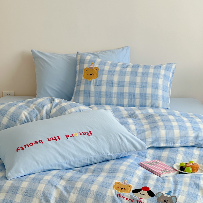 (总)觅糖家纺 2025新款全棉磨毛原创毛巾绣系列四件套,豹纹小猫,蜡笔小熊,快乐小狗,粉格子小猫,蓝格西高地,粉红小猫,腊肠狗狗,欢乐小熊,围脖小狗