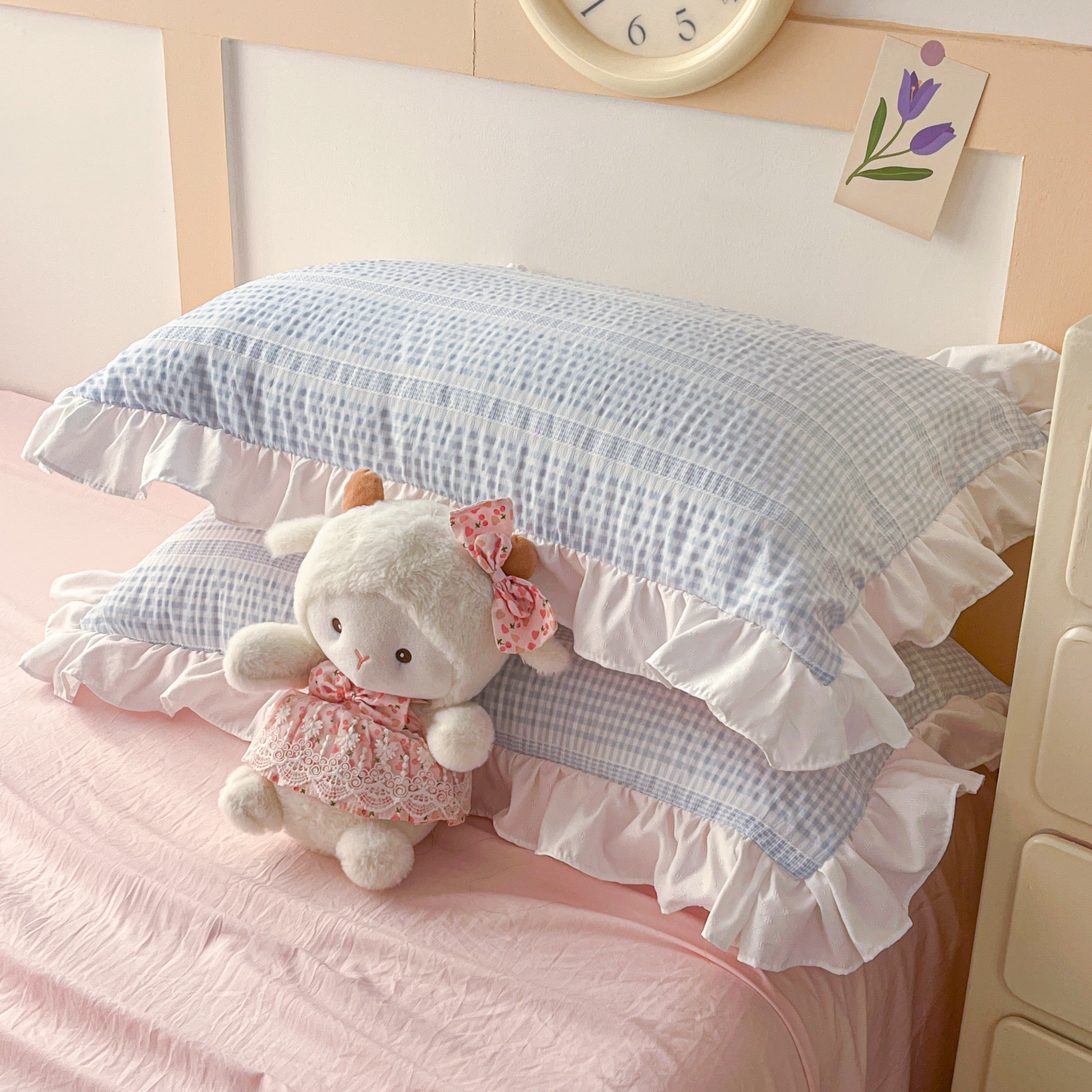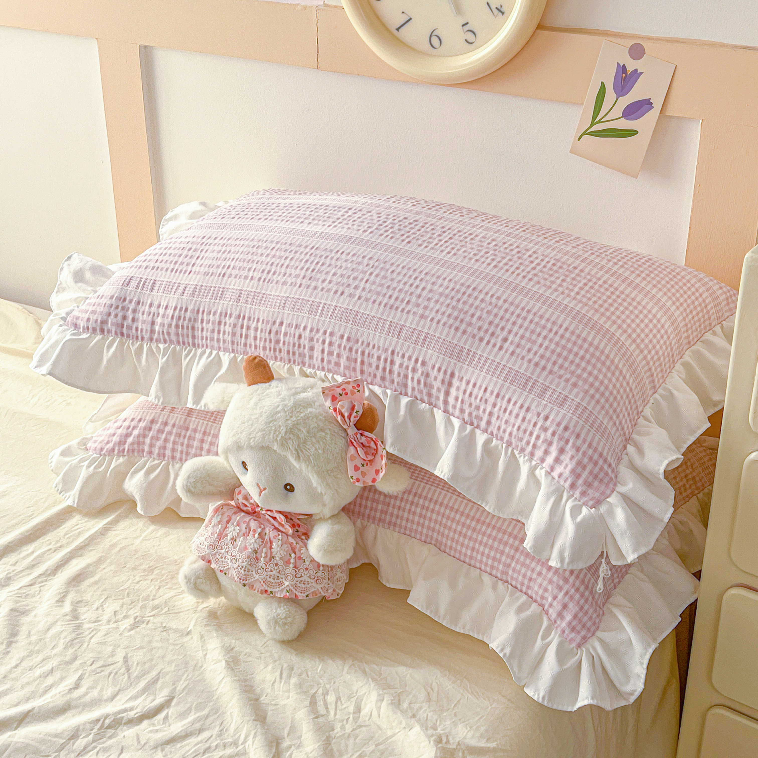 (总)老K (原美阁) 2025新款亲肤舒适针织棉泡泡纱花边单枕套