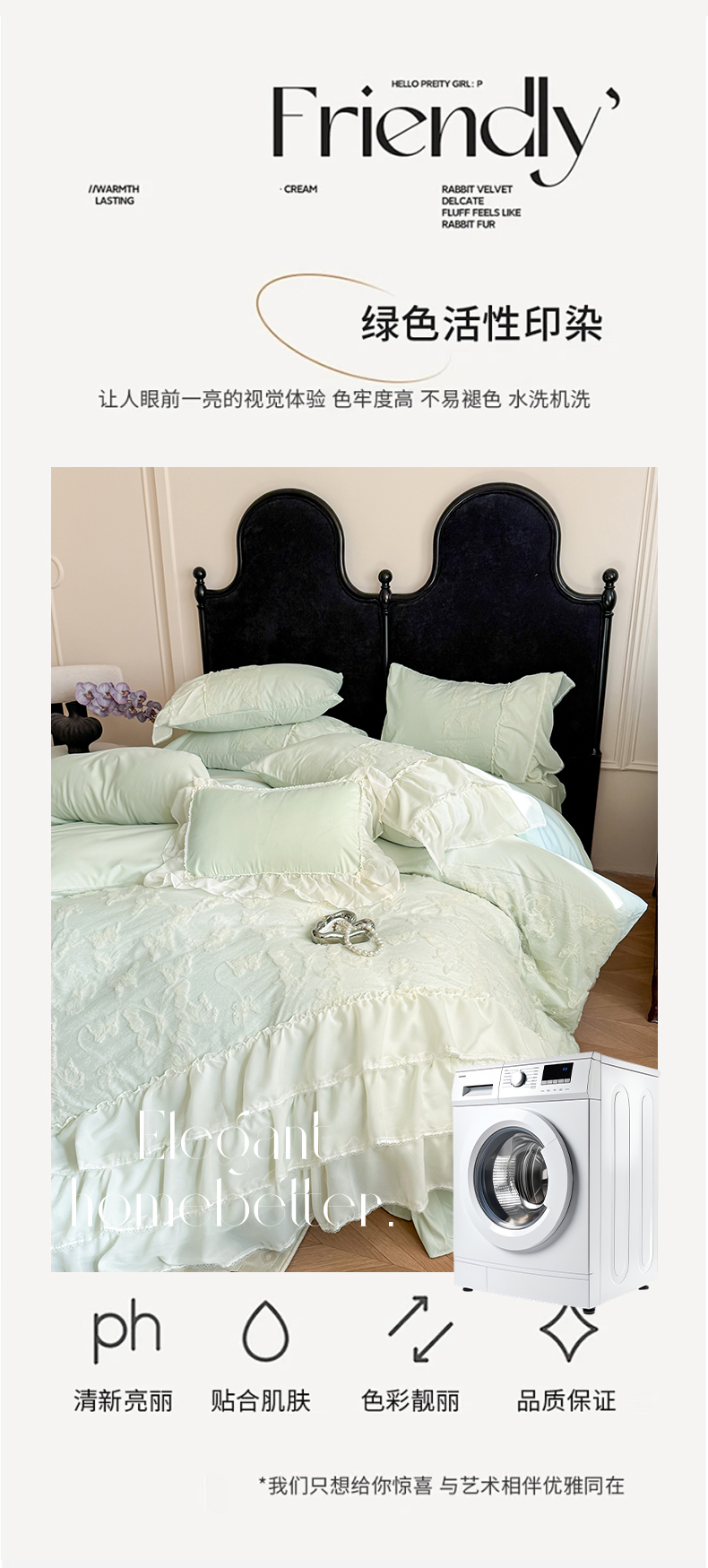 (总)吾欢心 2025秋冬新款加厚雕花绒婴儿绒安娜贝尔系列法式双层花边四件套,安娜贝尔白,安娜贝尔粉,安娜贝尔咖,安娜贝尔蓝,安娜贝尔绿,安娜贝尔紫