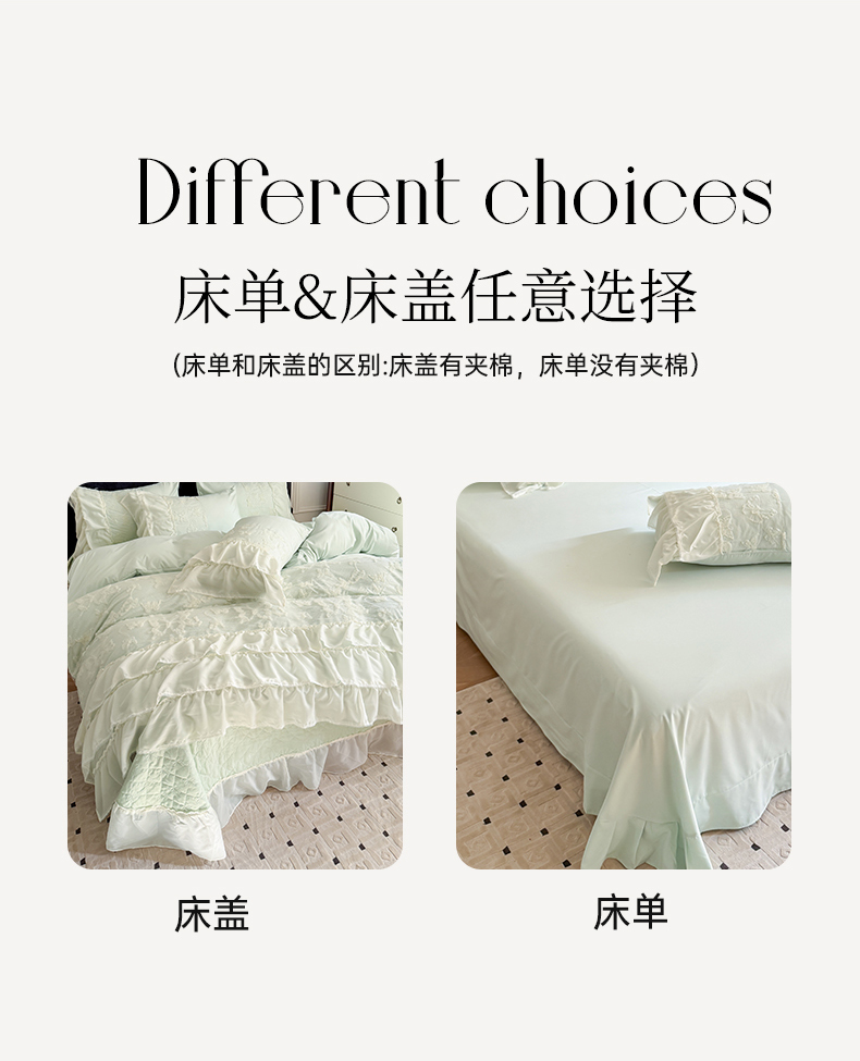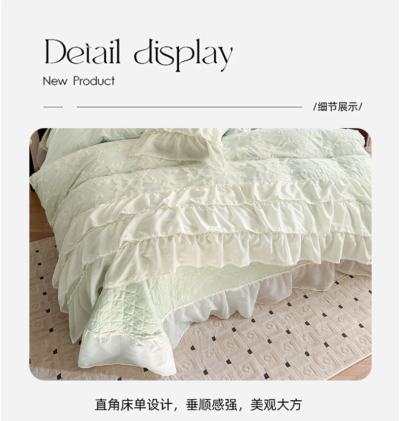 (总)吾欢心 2025新款公主风雪纺边四季通用夹棉床盖,床盖白,床盖粉,床盖黄,床盖咖,床盖绿,床盖抹茶绿,床盖紫