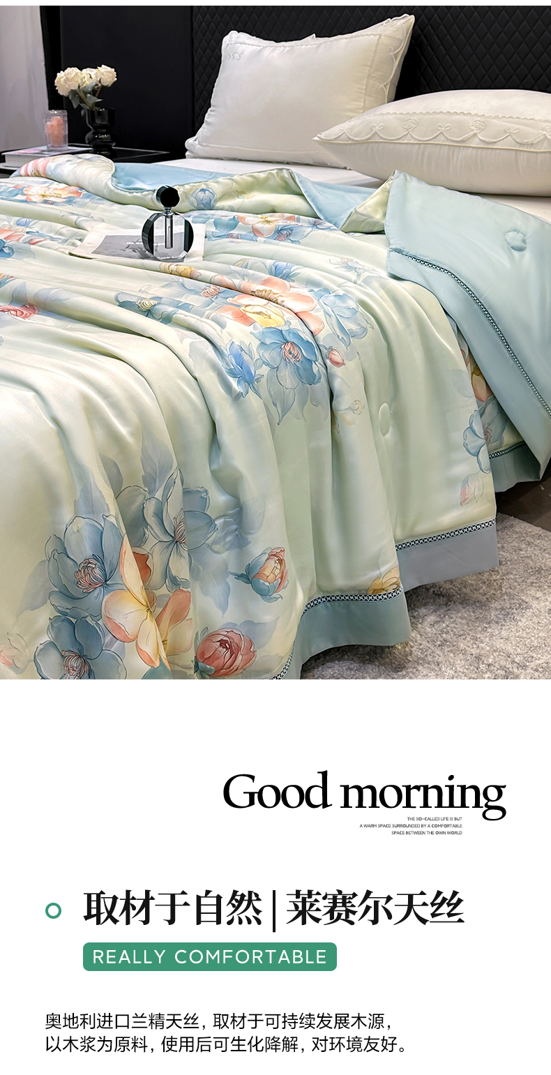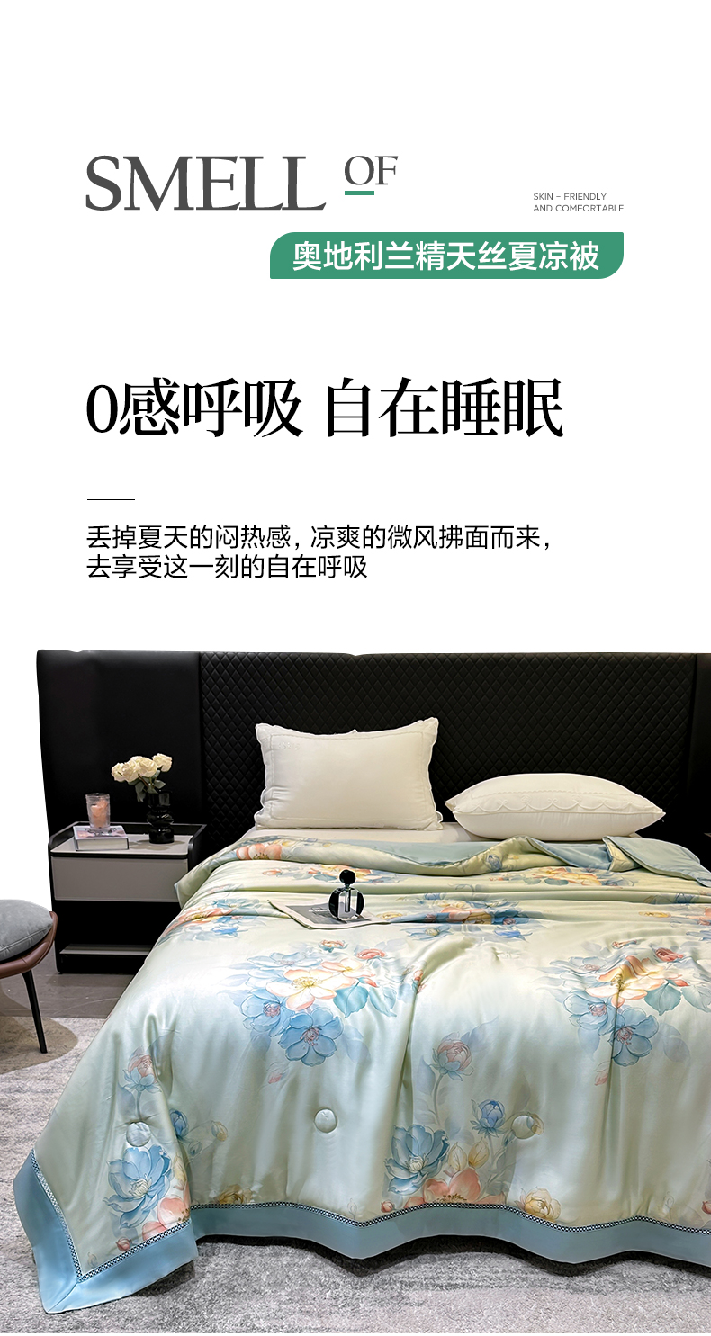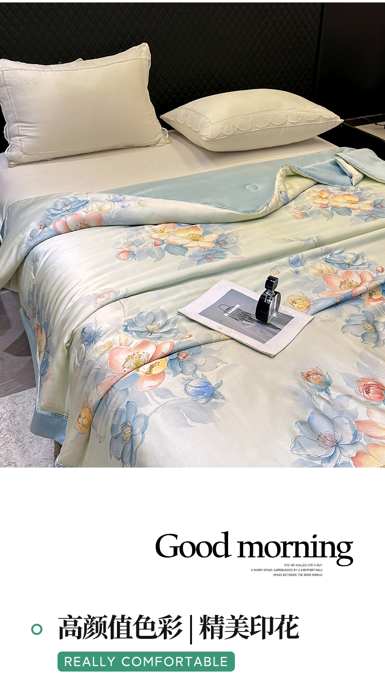 • 91家纺网 家纺一手货源 找家纺 心悦家纺  2025新款60S奥地利兰精天丝夏凉被空调被被芯 繁华-胧月