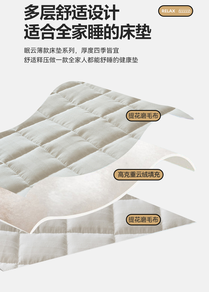 商品名称:三味舒屋 2025新款亲肤舒适眠云四季款薄床垫 保护垫-相思