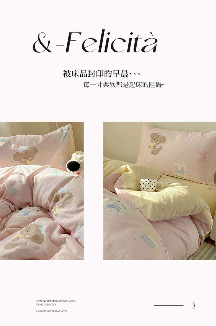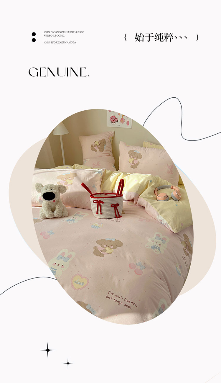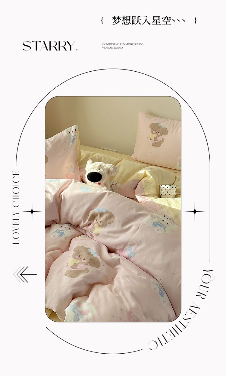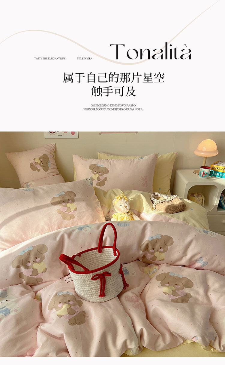 六巷胡同 2025新款 INS减龄可爱风卡通全棉四件套第五系(森林音乐会系列) 点点面包犬