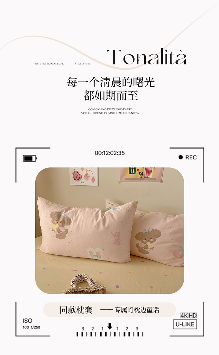 商品名称:六巷胡同 2025新款 INS减龄可爱风卡通全棉四件套第五系(森林音乐会系列) 点点面包犬