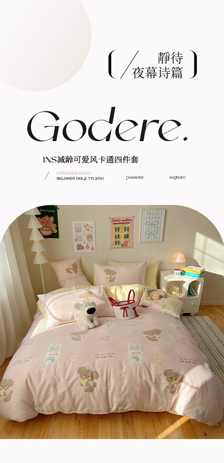 (总)六巷胡同 2026春夏新款韩式INS减龄花边款全棉卡通四件套,花边洋气柯基崽,花边欢乐课堂趴,花边假日庄园兔,花边蓝格奶油狗,花边浪漫碎花犬,花边秘境花园熊,花边奶油甜心熊