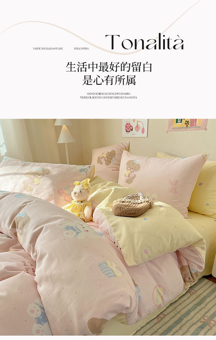 (总)六巷胡同 2025新款INS卡通童趣混搭风全棉四件套第二系,混搭-蛋糕围兜熊,混搭-奶油酣睡熊,混搭-奈斯羞羞狗,混搭-小蓝格甜点,混搭-雪糕哈皮熊,混搭-月亮睡睡熊