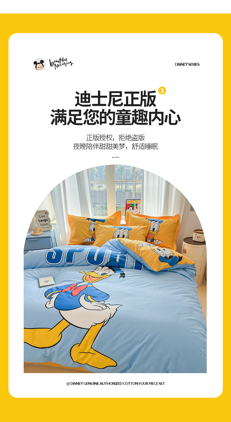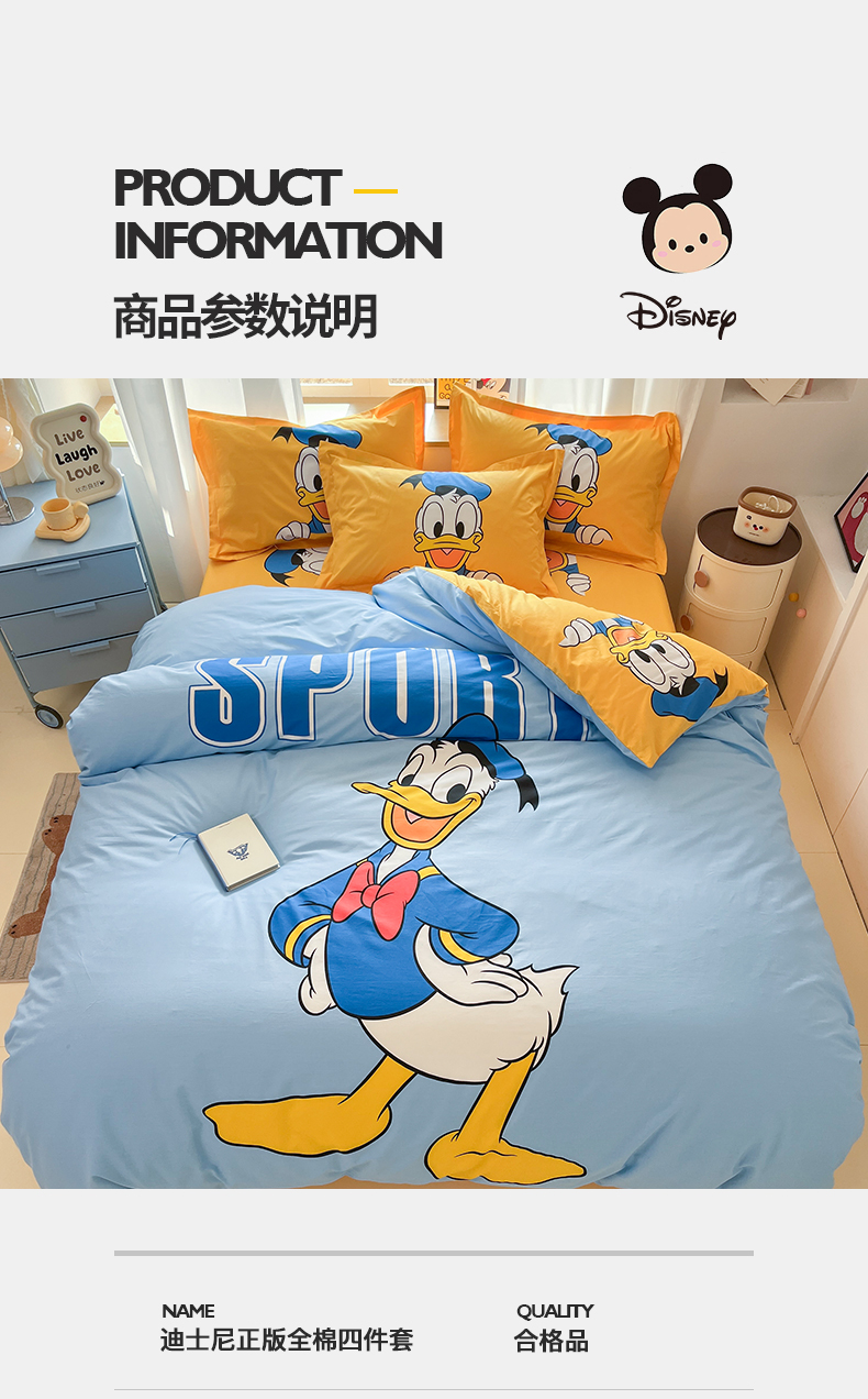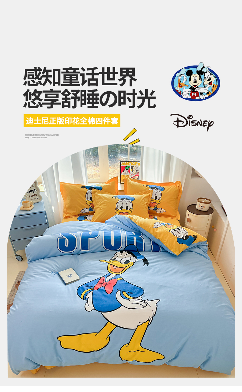 当前位置: 91家纺网 > 商品网购 > 床品套件 > 四件套 > 全棉普通四件套 > 典曼家纺 2025新款迪士尼大版印花卡通四件套 开心鸭