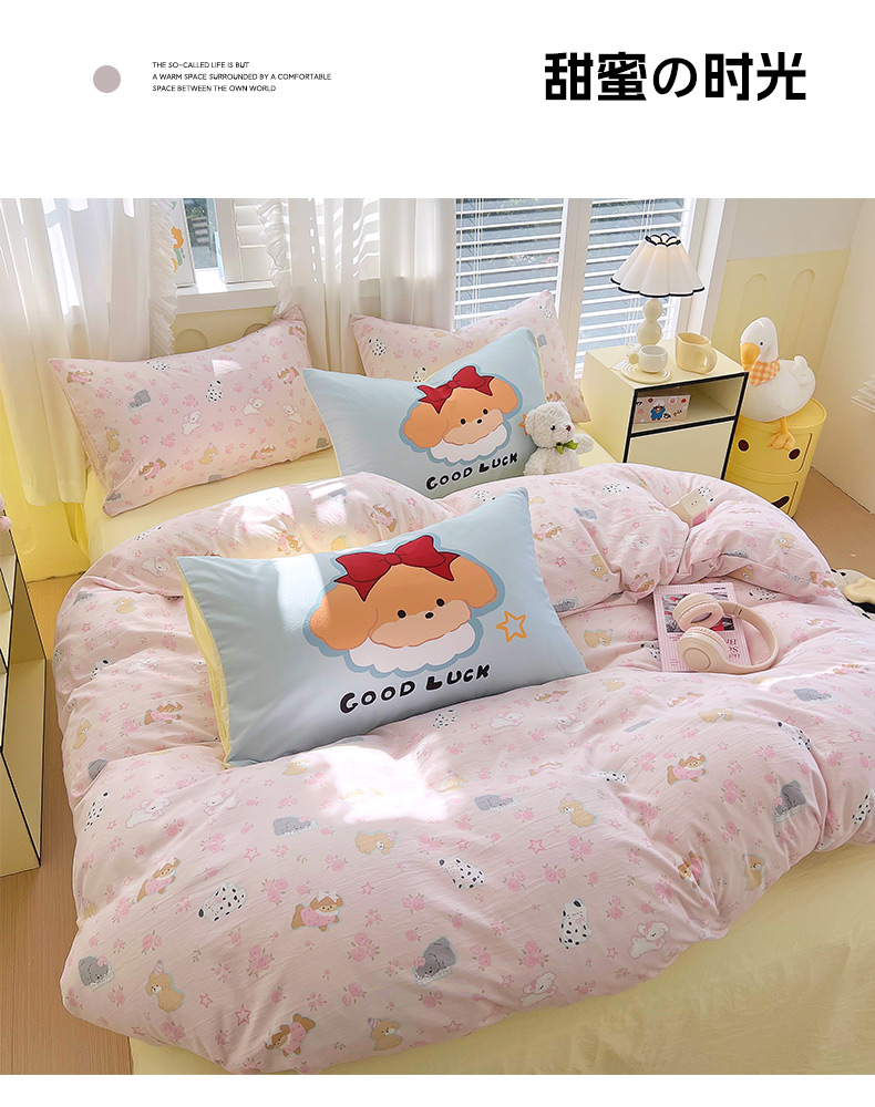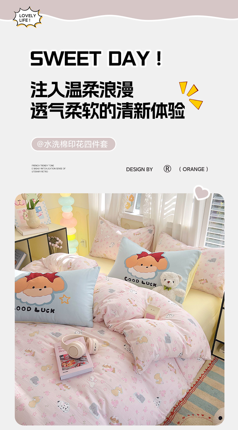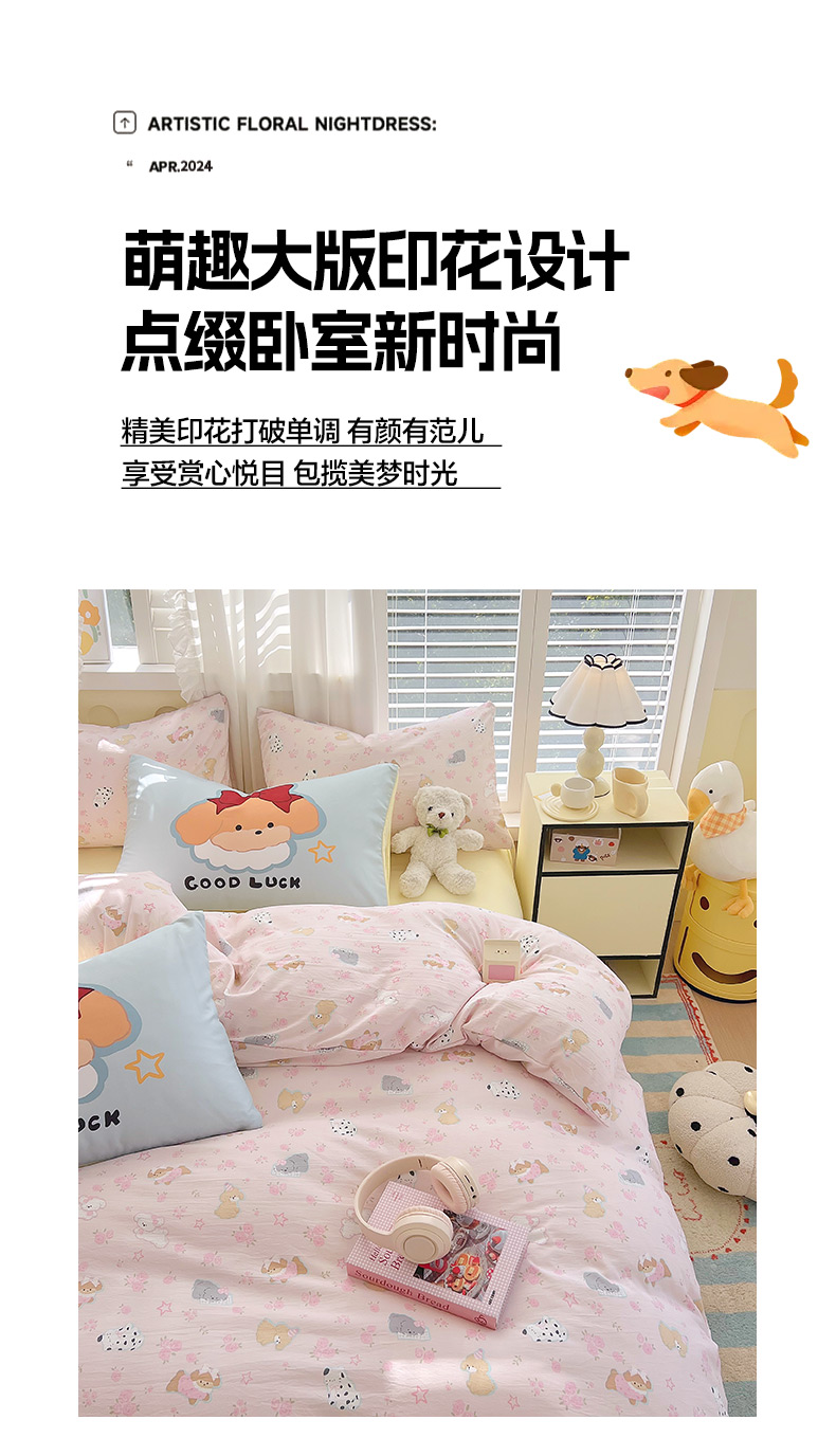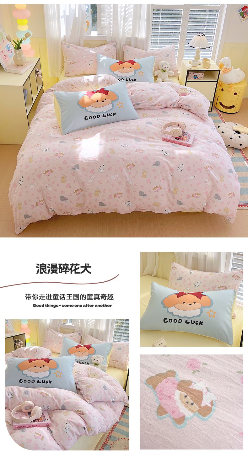 大麦乐田2025新款超柔大版印花四件套 浪漫碎花犬