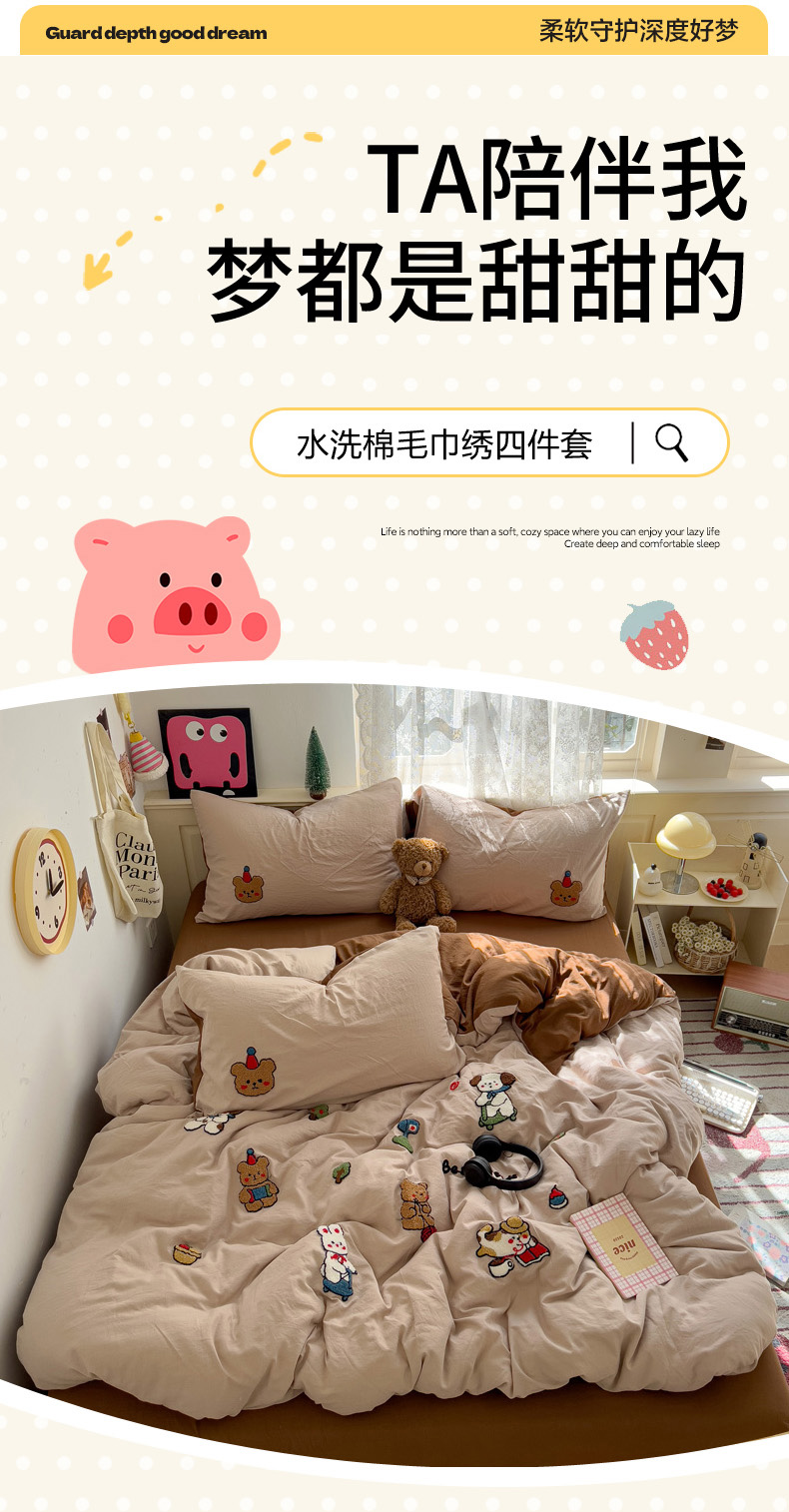 当前位置: 91家纺网 > 商品网购 > 床品套件 > 四件套 > 毛巾绣四件套 > 花伞家居 2025新款精灵水洗棉毛巾绣四件套含买家秀 滑板车-奶茶焦糖