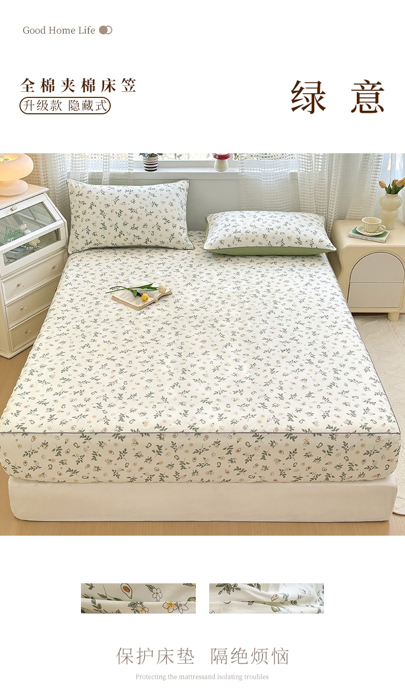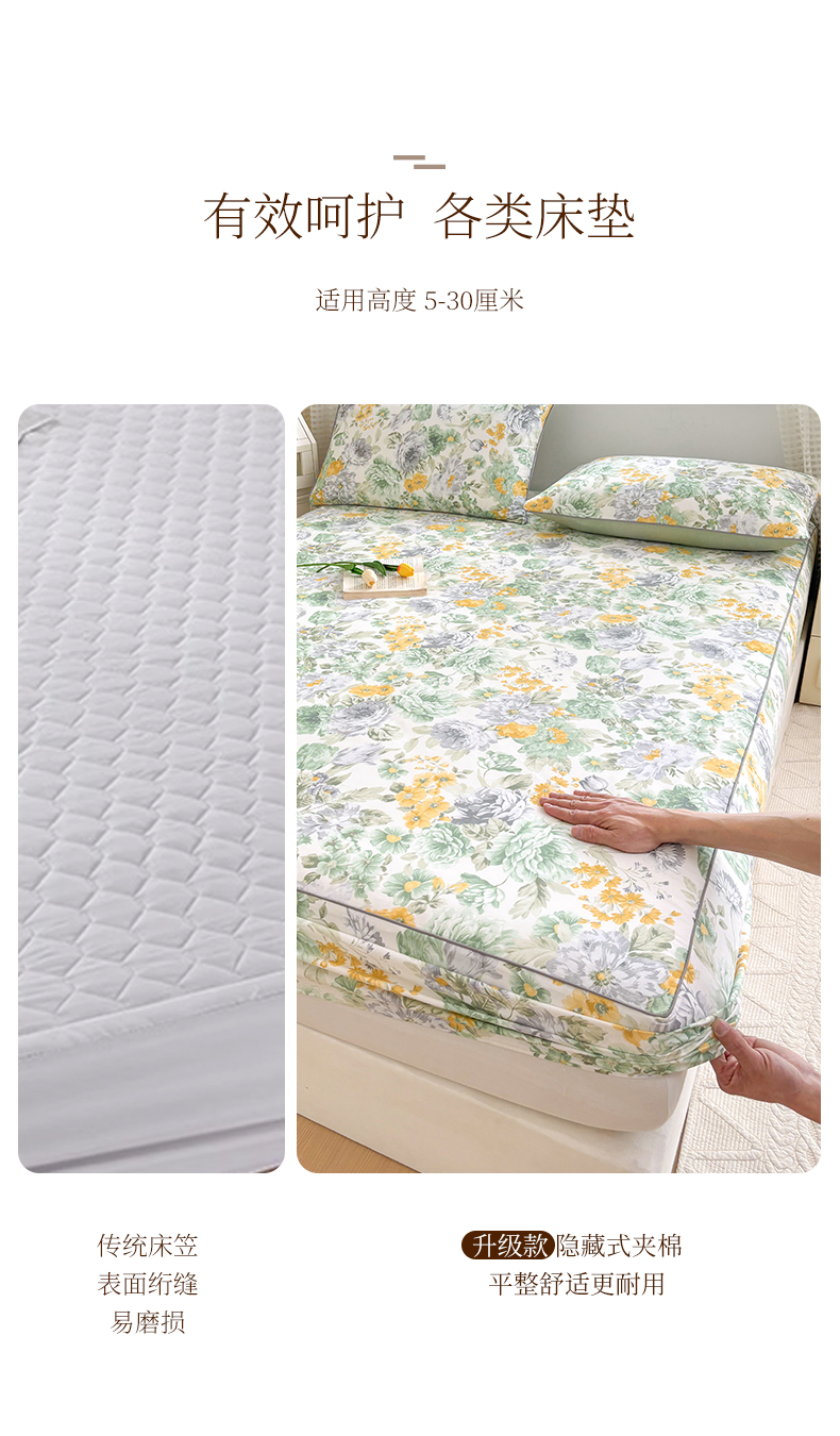 商品名称:元元被芯 2025新款40支13372全棉印花全棉隐藏式夹棉床笠 缘月