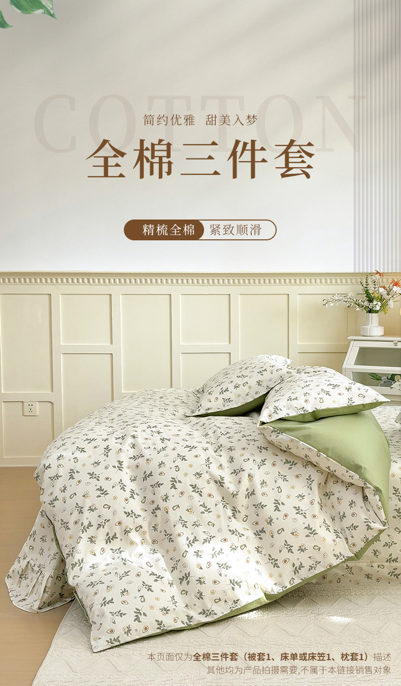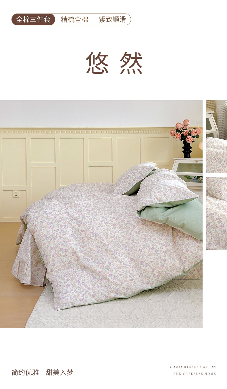 当前位置: 91家纺网 > 商品网购 > 床品套件 > 三件套 > 元元被芯 2025新款40支13372全棉印花全棉三件套 若萱