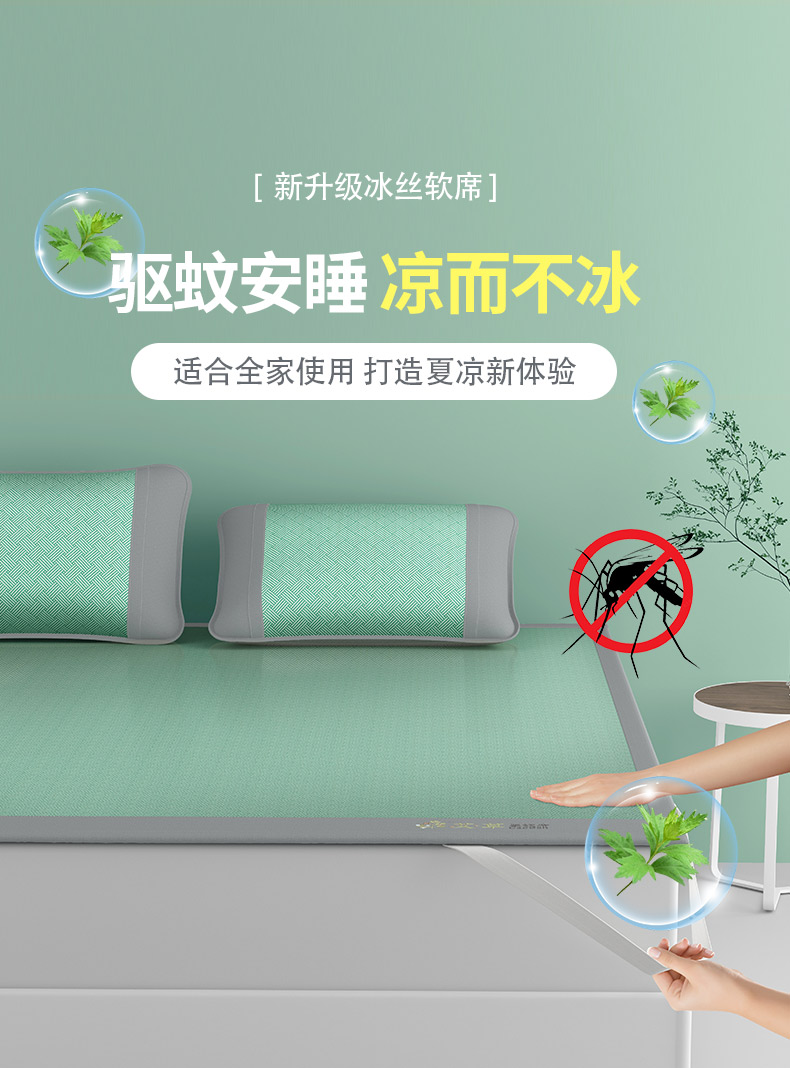 当前位置: 91家纺网 > 商品网购 > 床上用品 > 凉席 > 凉席套件 > 福来临家纺 2025新款舒适亲肤凉感艾草驱蚊席-床席款-床笠款 艾草驱蚊席-绿床席款