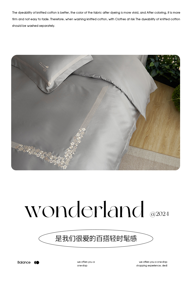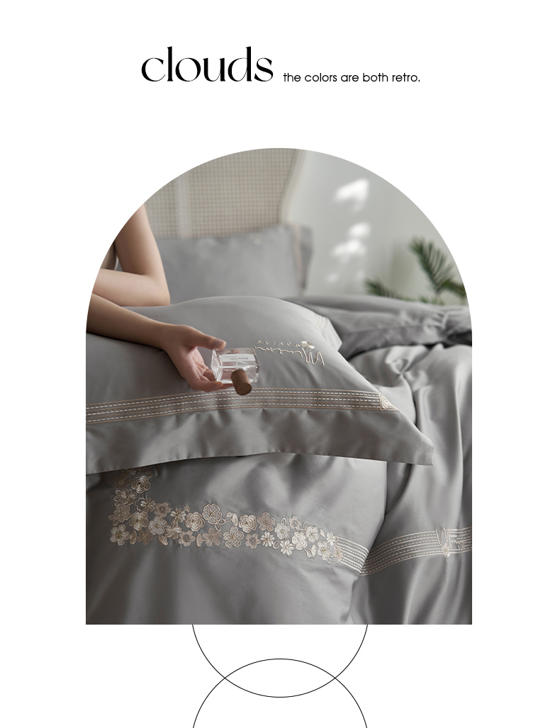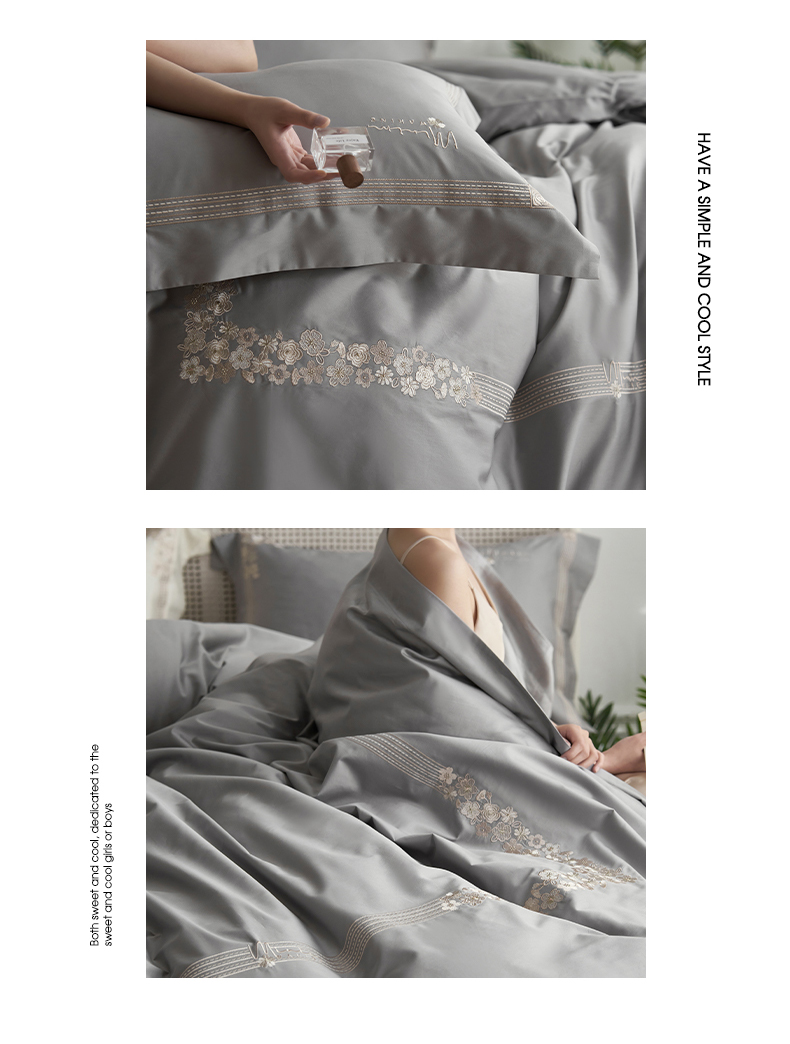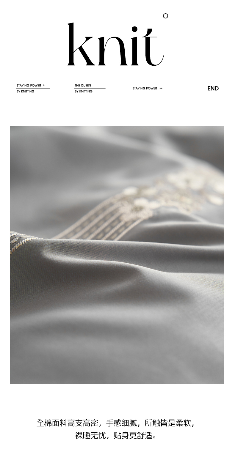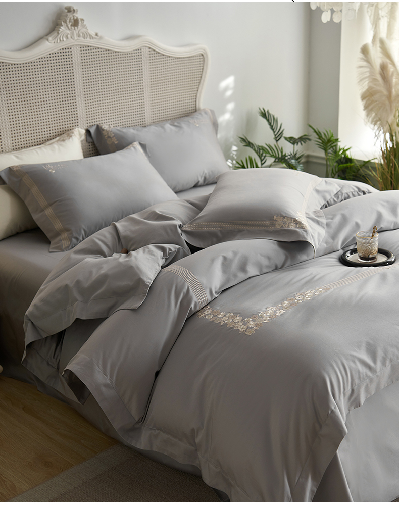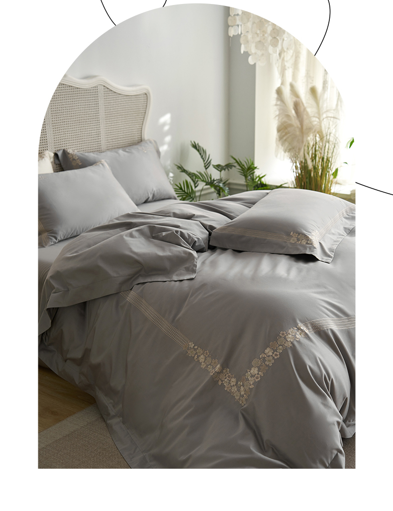 商品名称:嗯呢家纺 2025新款A类全棉刺绣四件套 时尚灰
