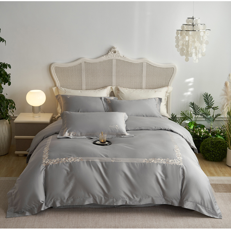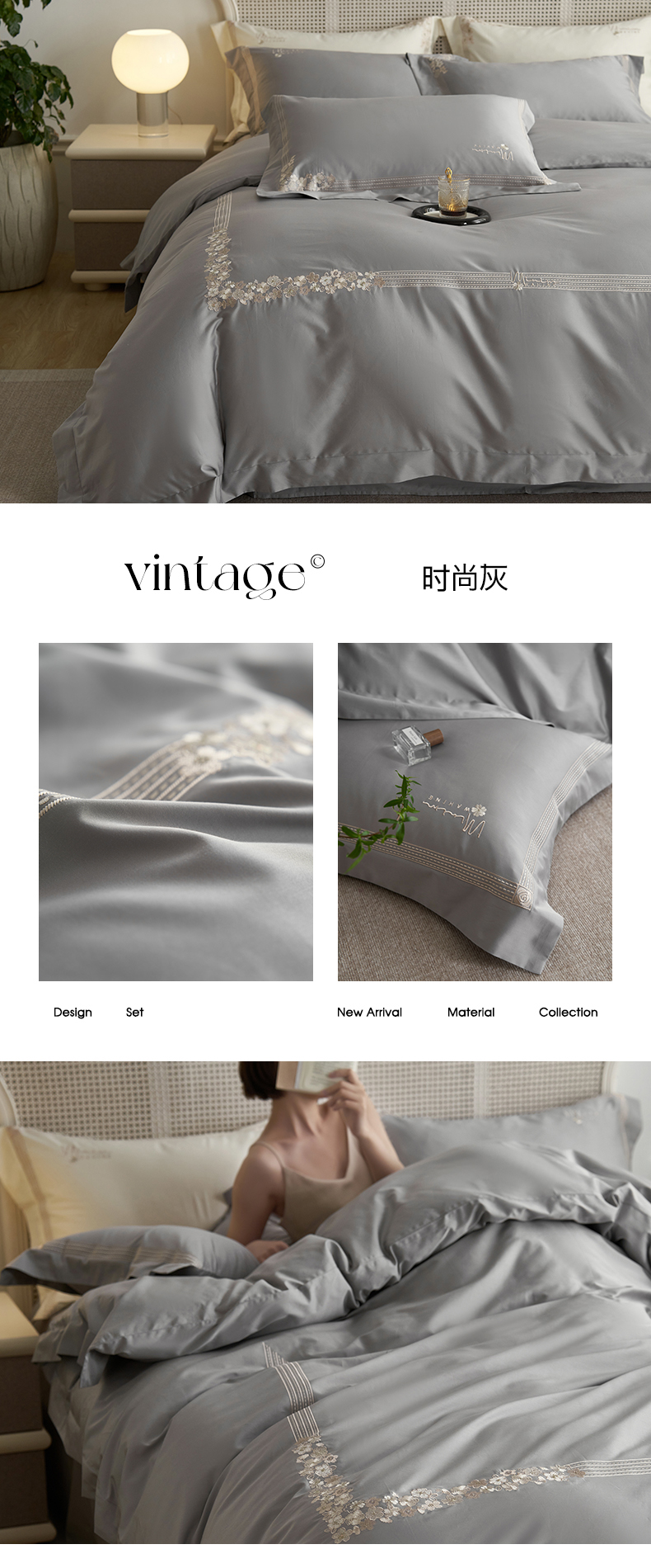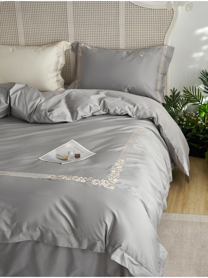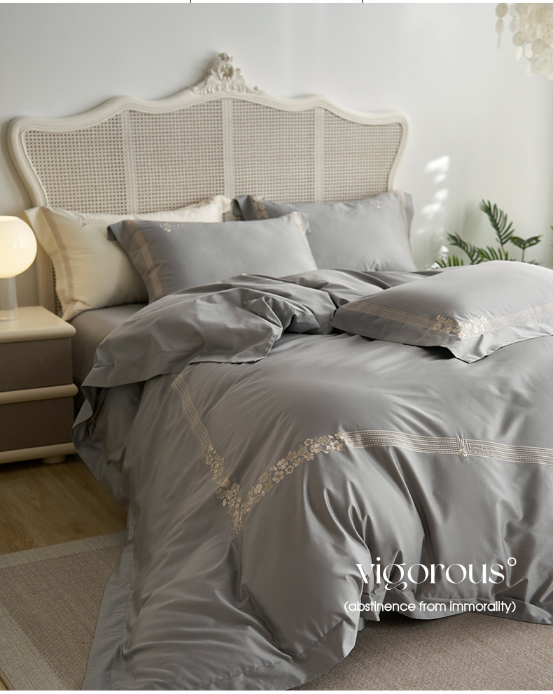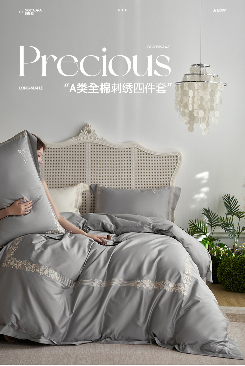 嗯呢家纺 2025新款A类全棉刺绣四件套 时尚灰