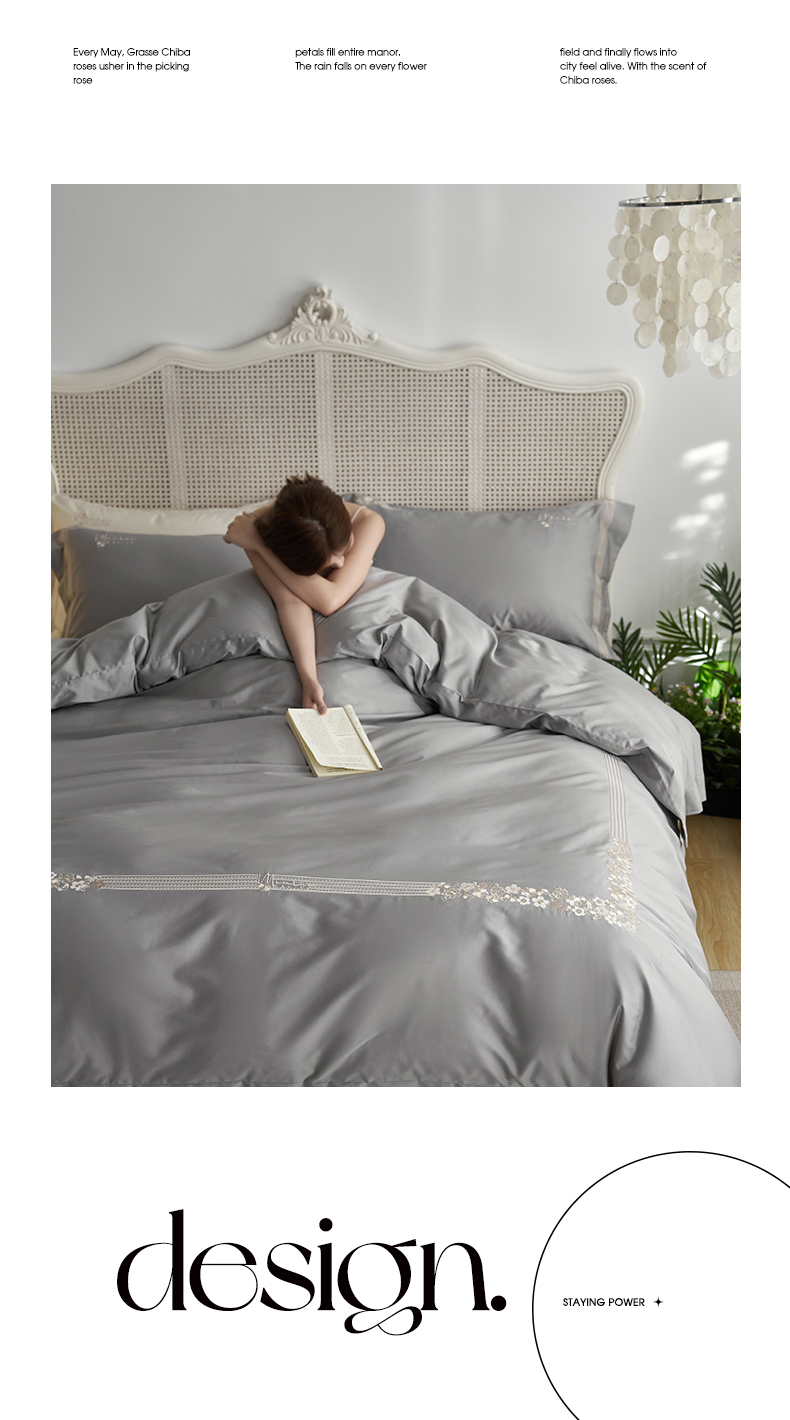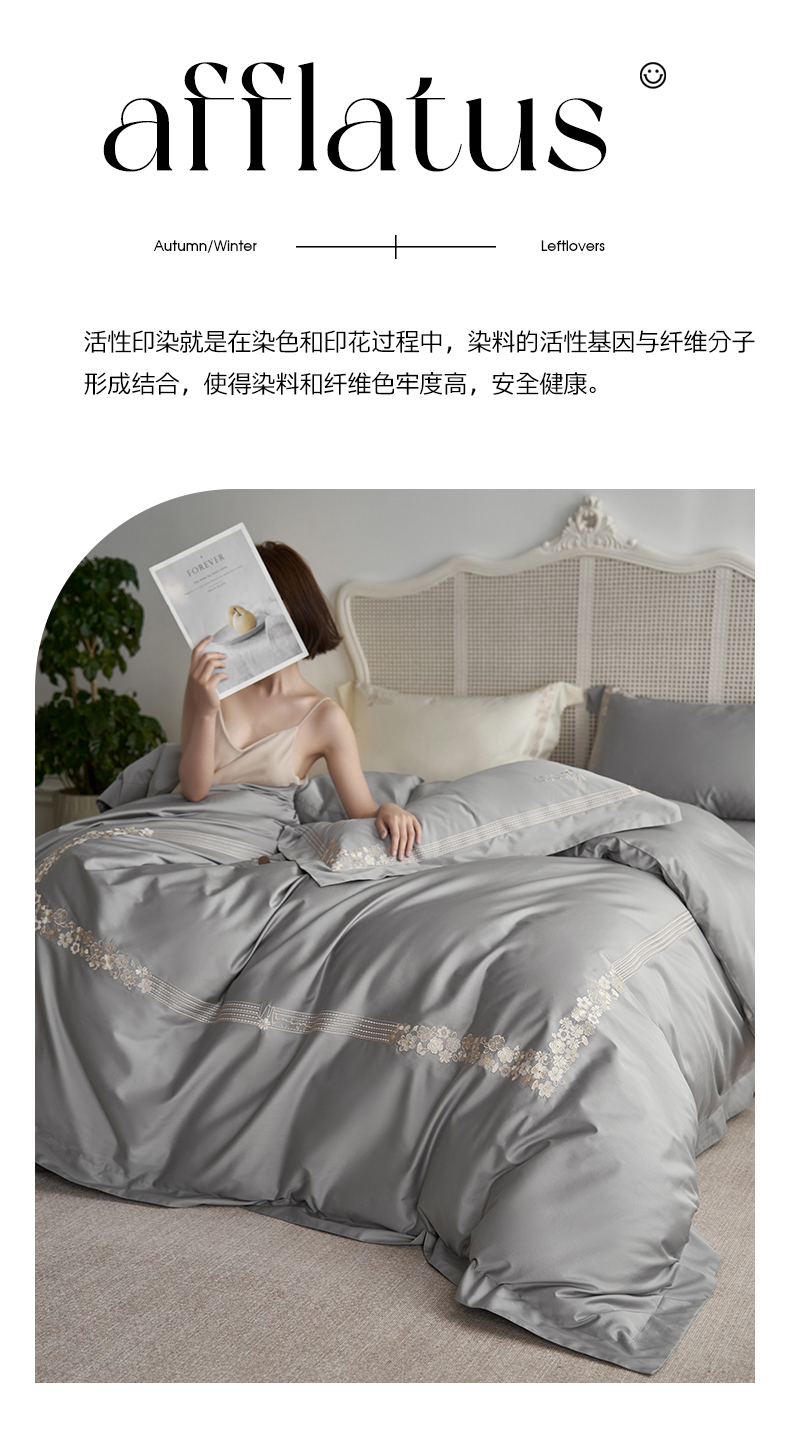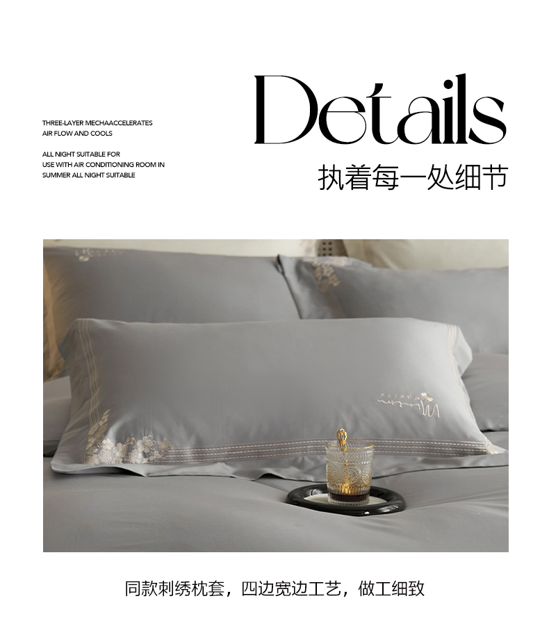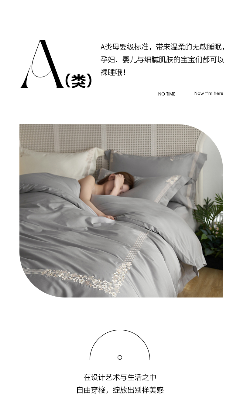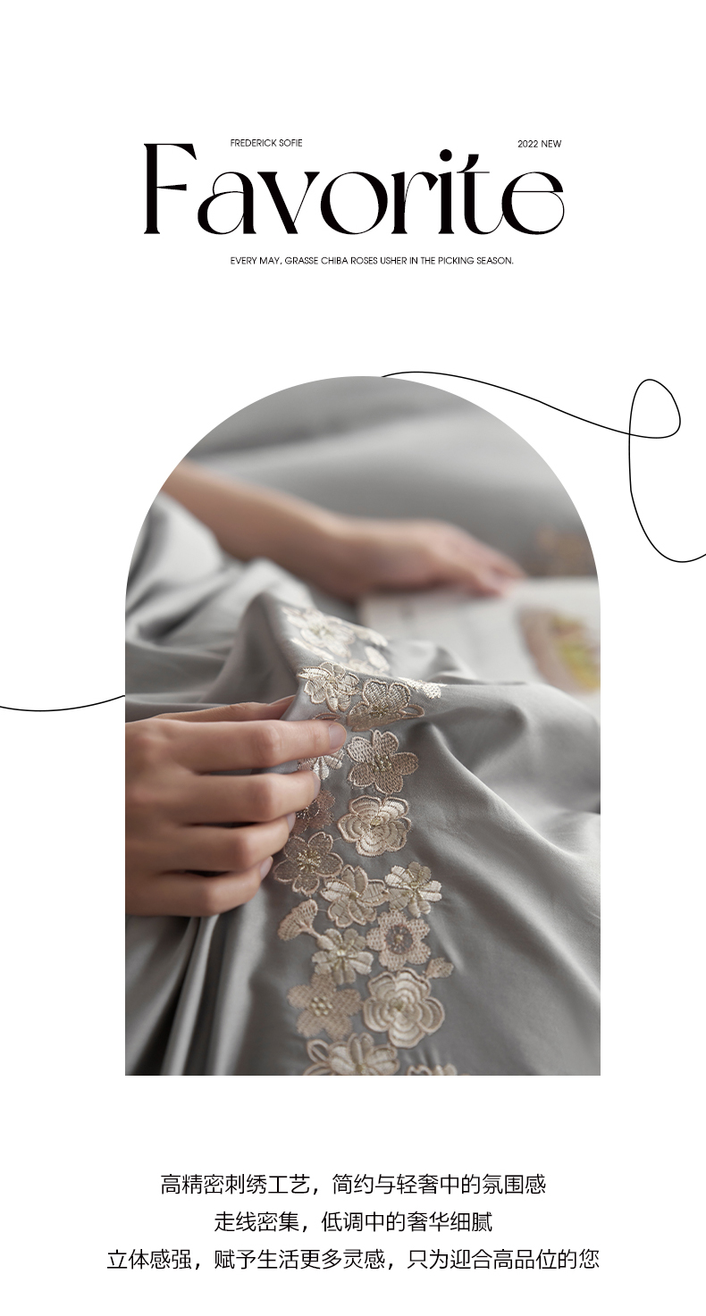 嗯呢家纺 2025新款A类全棉刺绣四件套 时尚灰