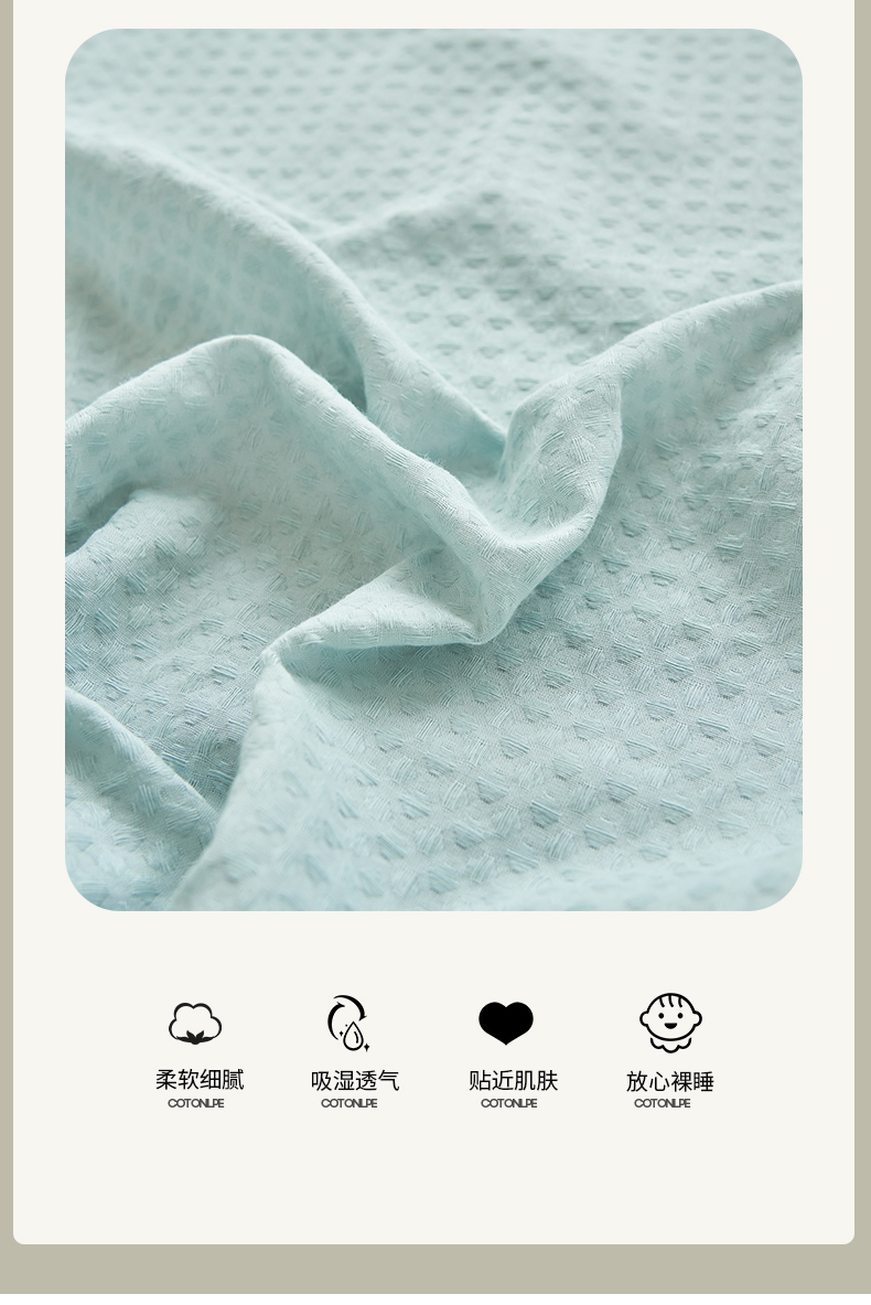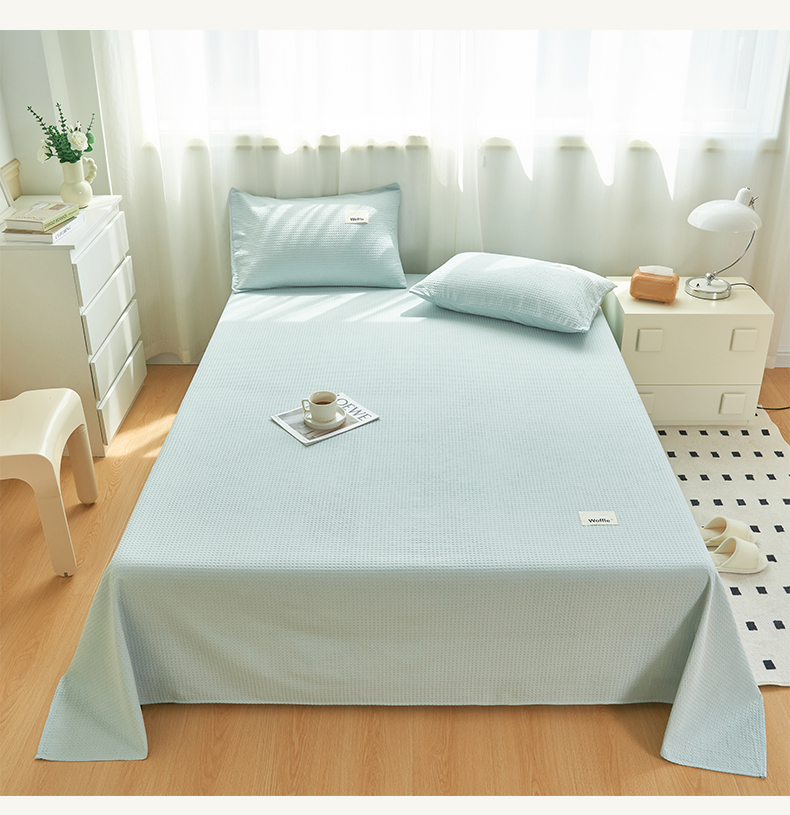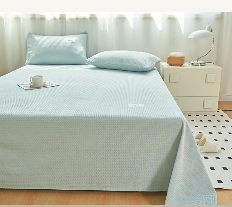 寐绸家纺 2025新款纯棉华夫格床单 纯棉华夫格床单-天蓝