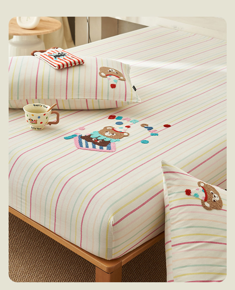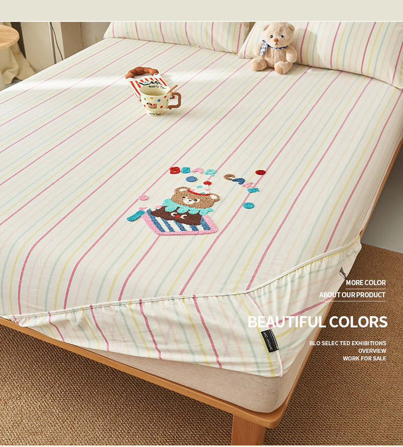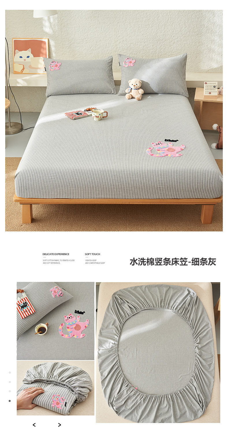 寐绸家纺 2025新款纯棉色织水洗棉竖条单床笠 水洗棉竖条床笠-宽条浅蓝