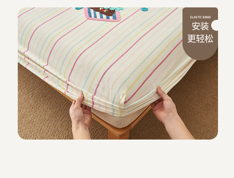 • 91家纺网 家纺一手货源 找家纺 寐绸家纺 2025新款纯棉色织水洗棉竖条单床笠 水洗棉竖条床笠-宽条浅蓝