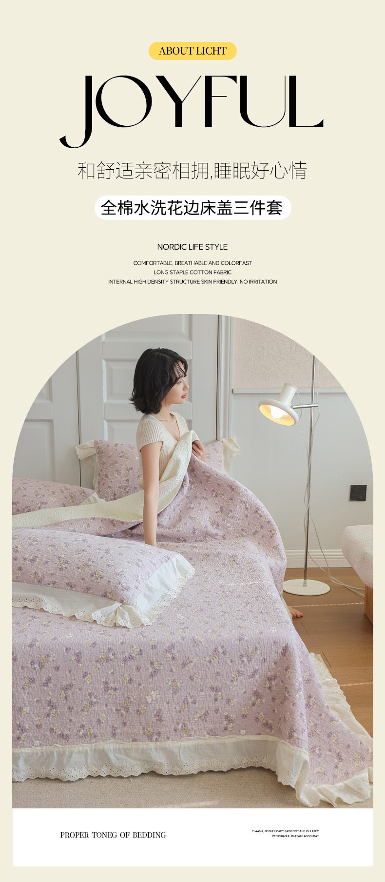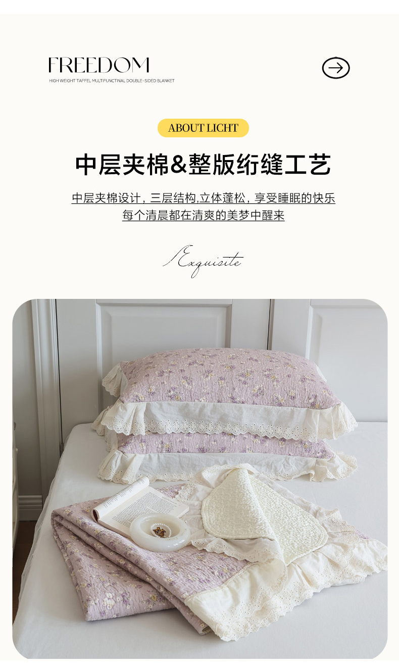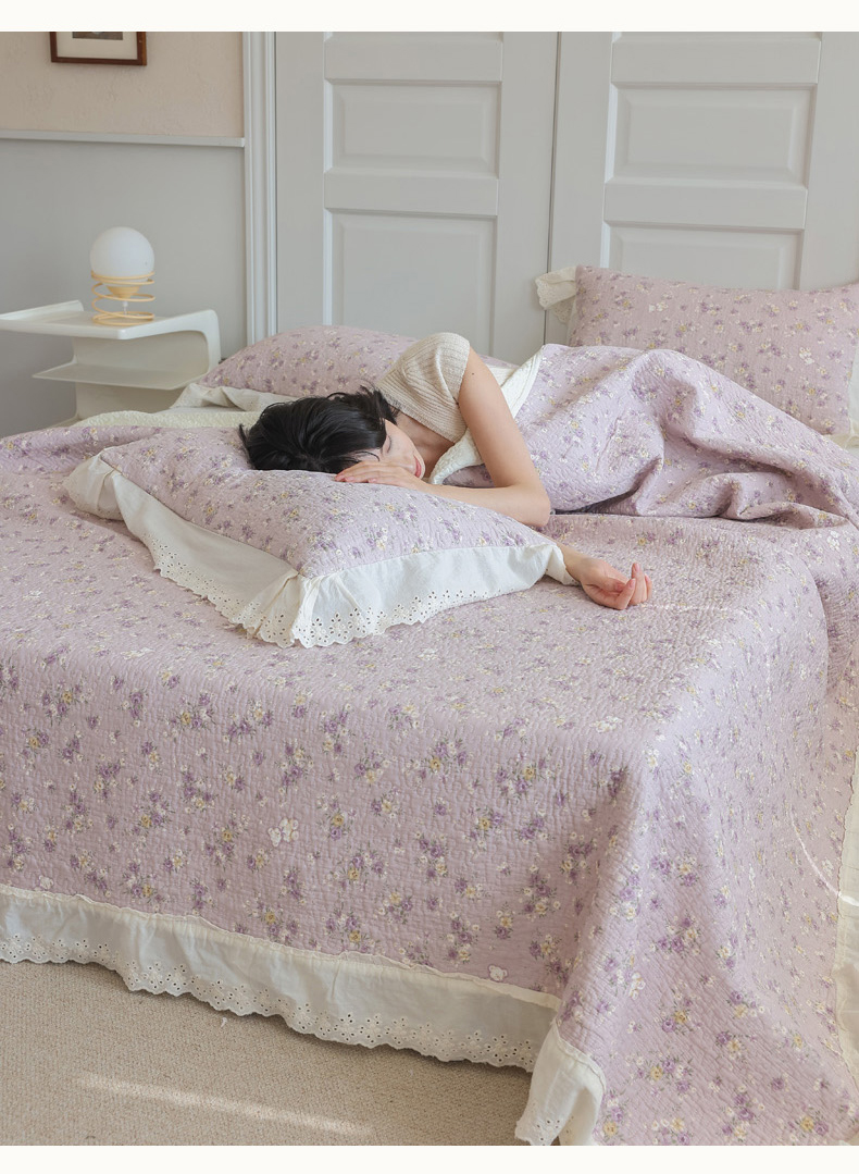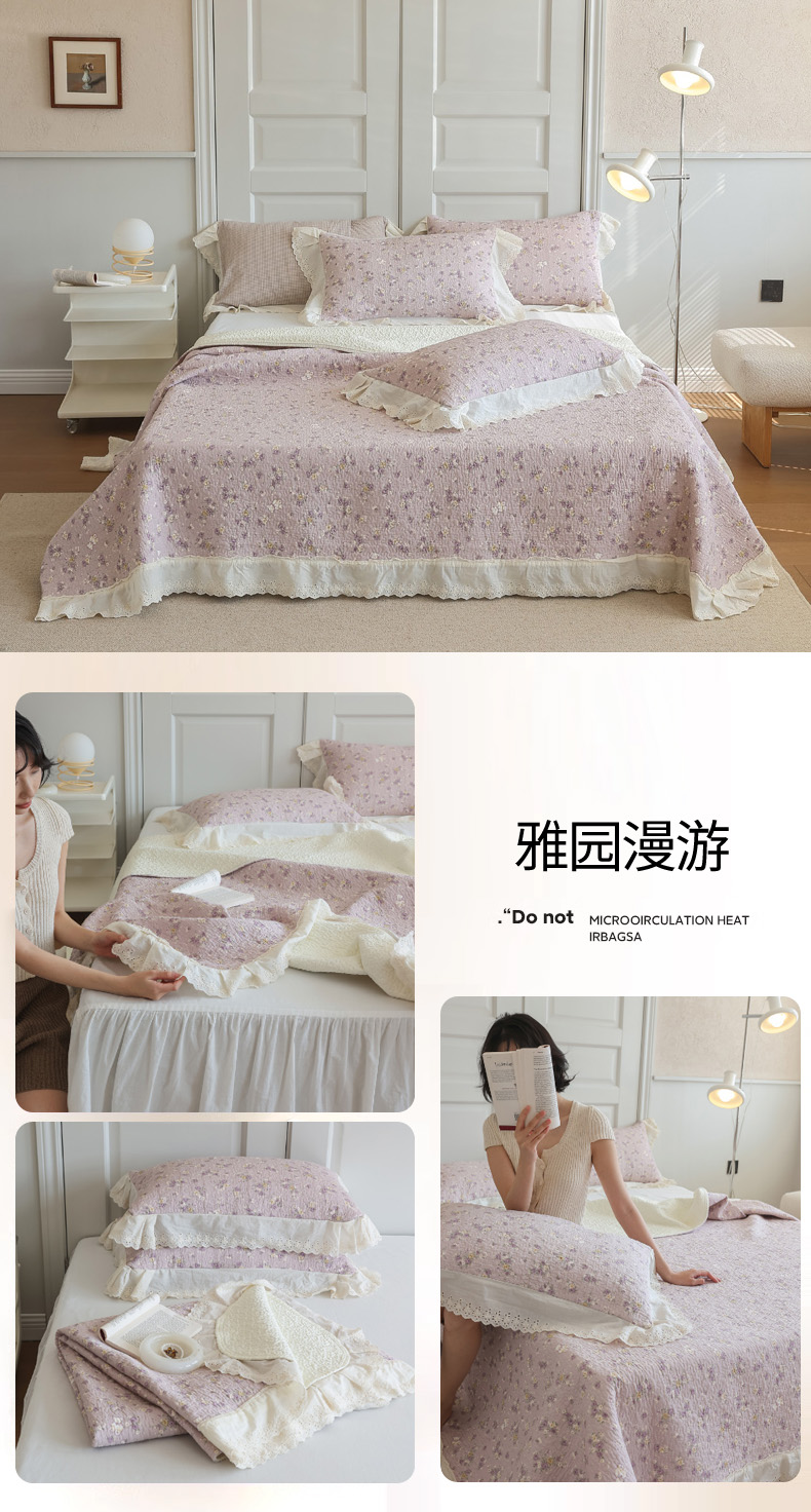 商品名称:万盛家纺 2025新款全棉水洗花边床盖三件套 雅园漫游
