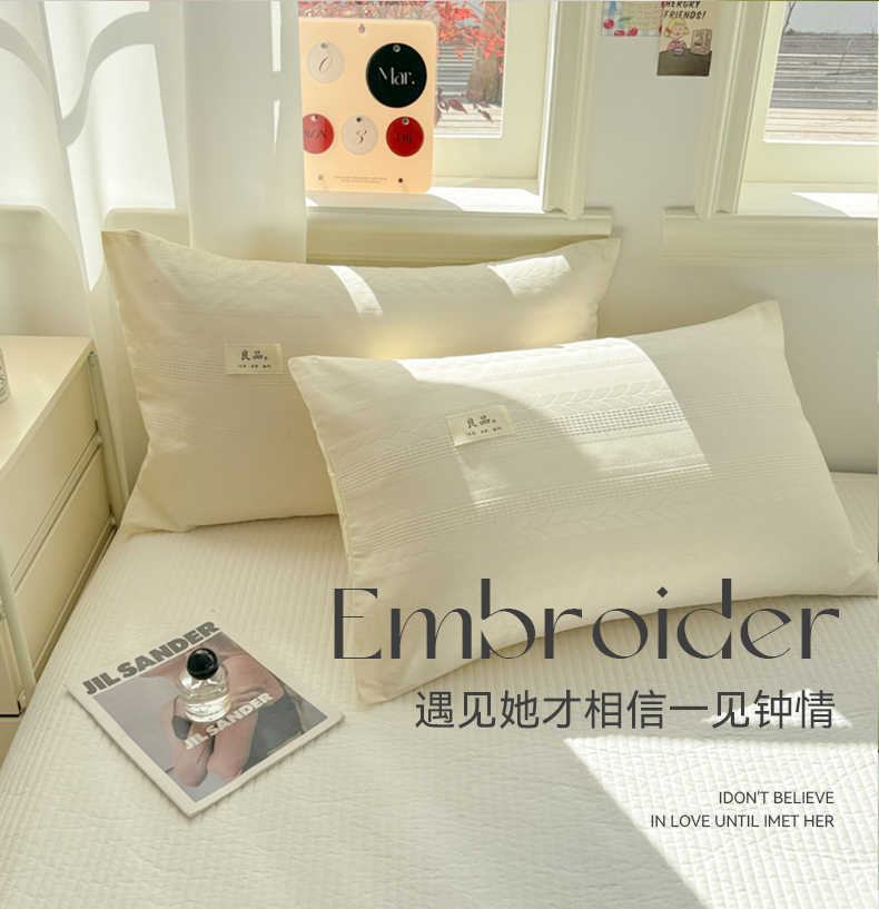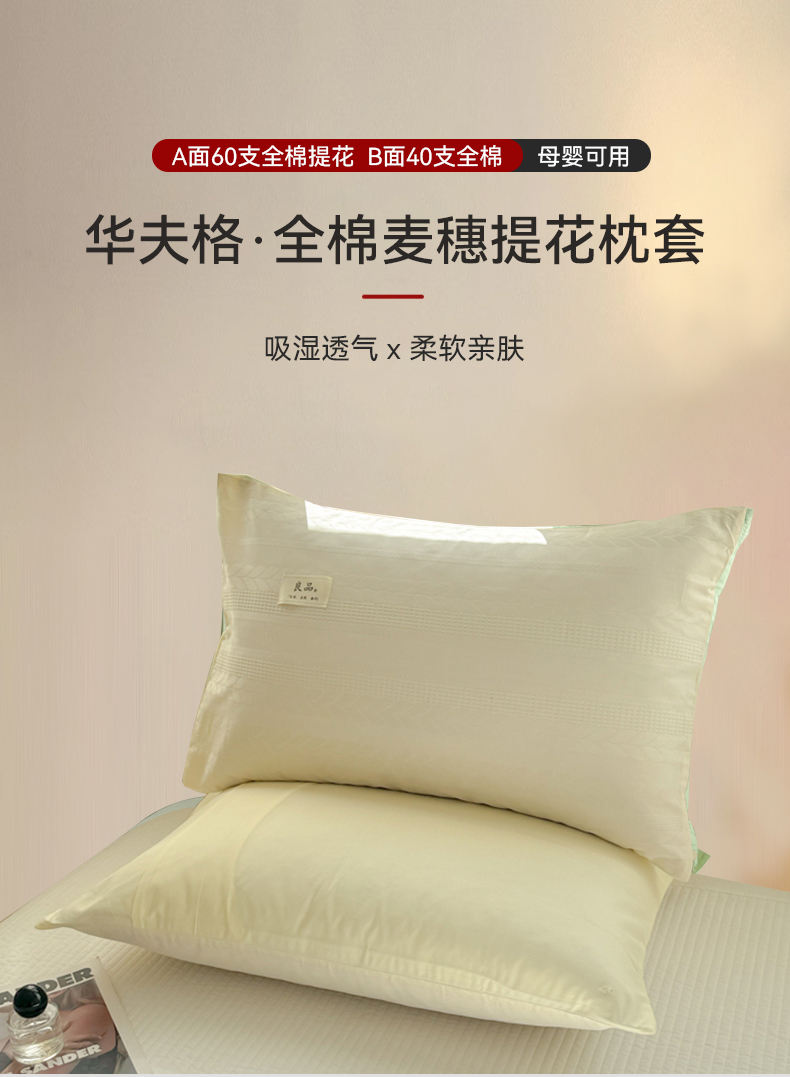 商品名称:眠博士 2025新款全棉华夫格麦穗枕套 华夫格枕套-麦穗米