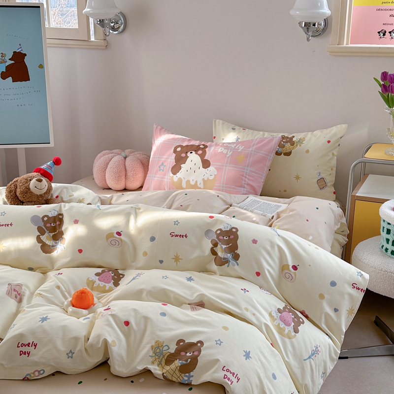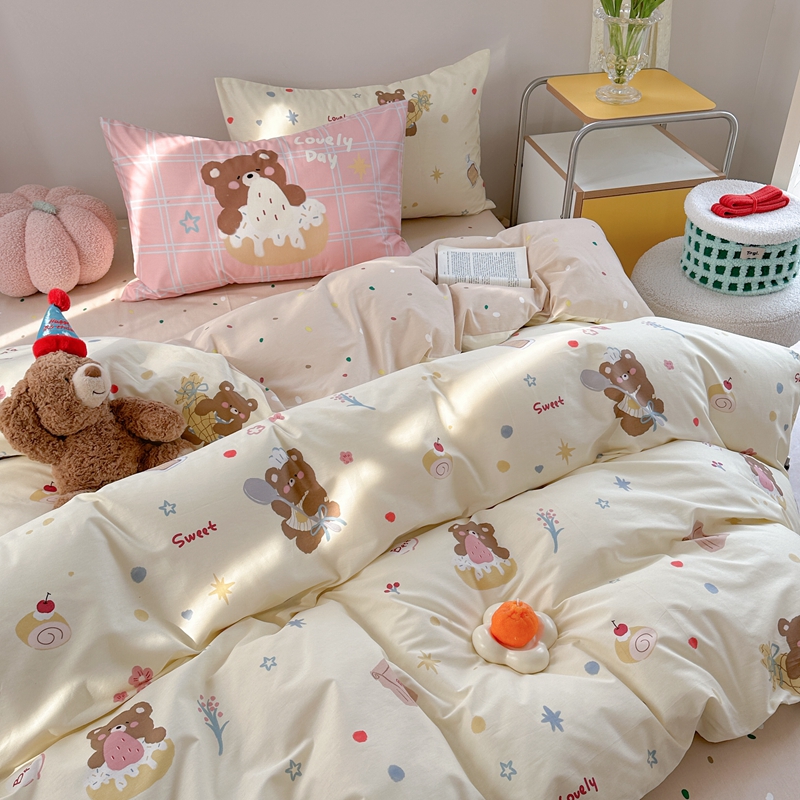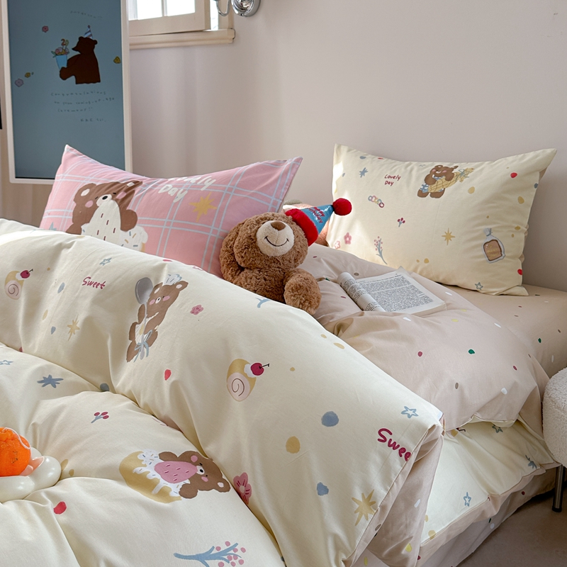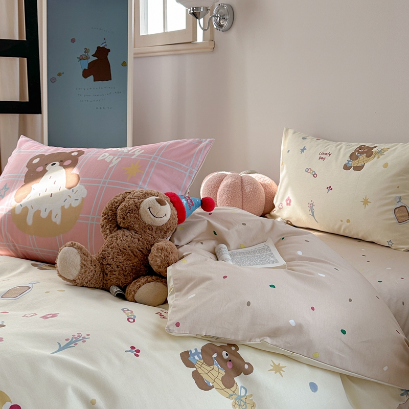 (总)时年家纺 2025新款全棉磨毛大版卡通印花系列套件,趣味熊,爱心熊,安静小象,波点兔,可爱熊宝,萌宝,奶油玩偶,小奥汀,慵懒猫咪