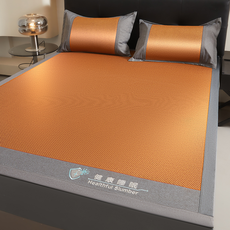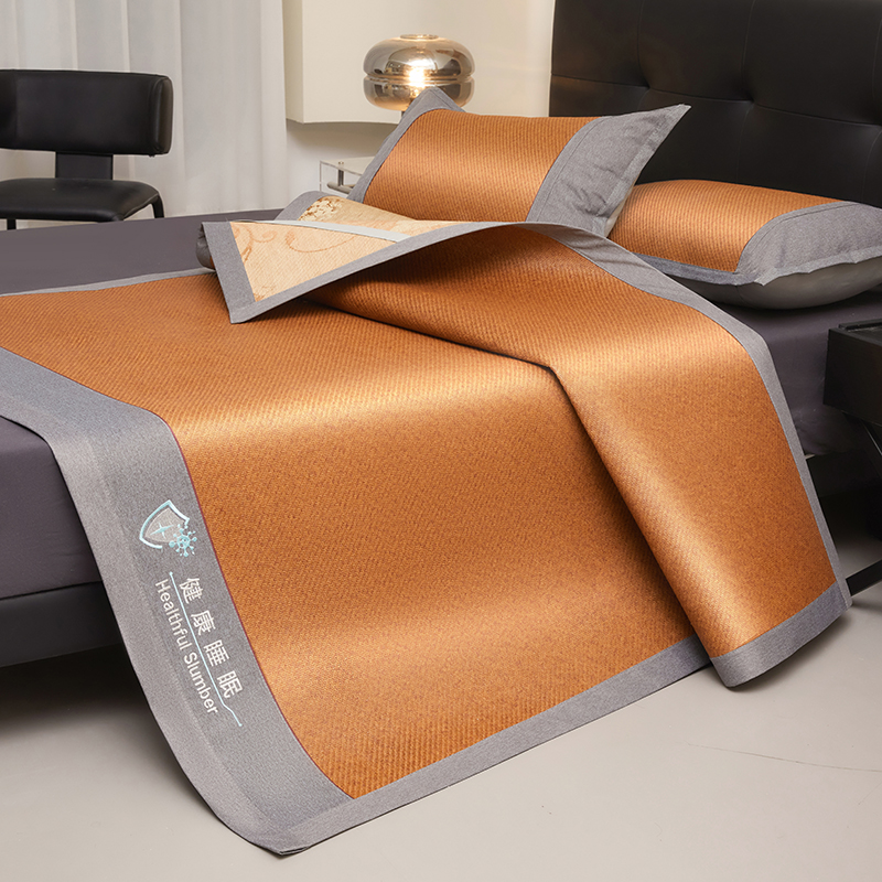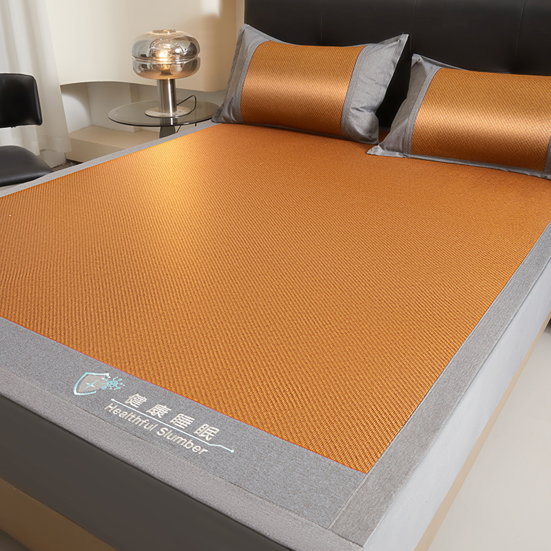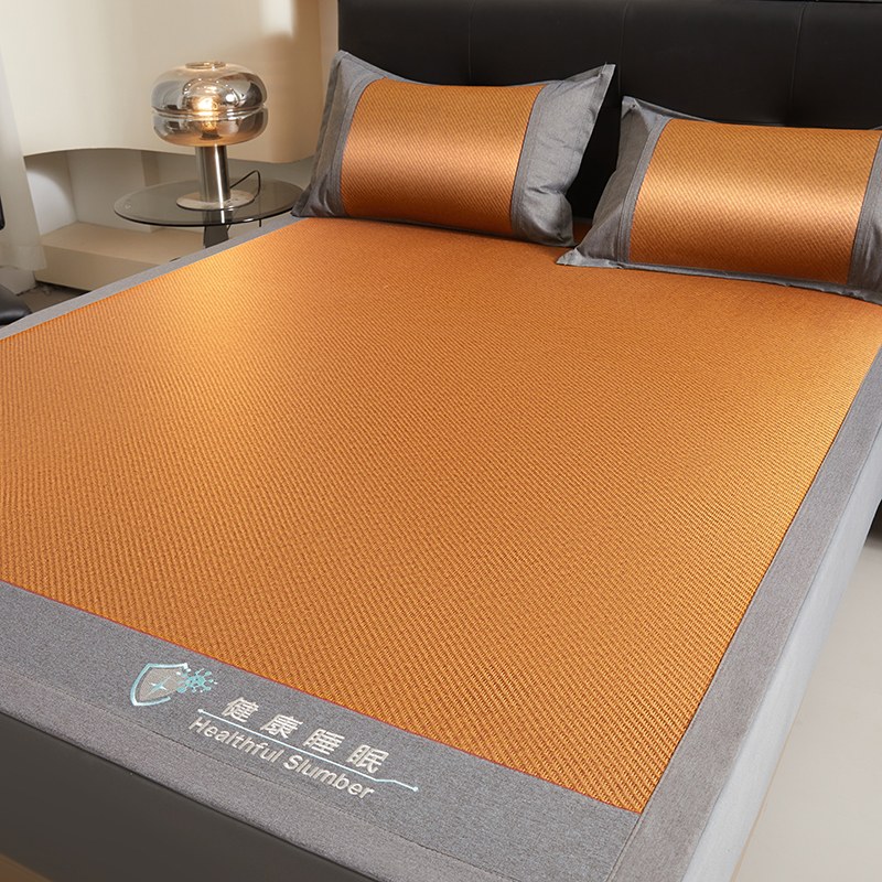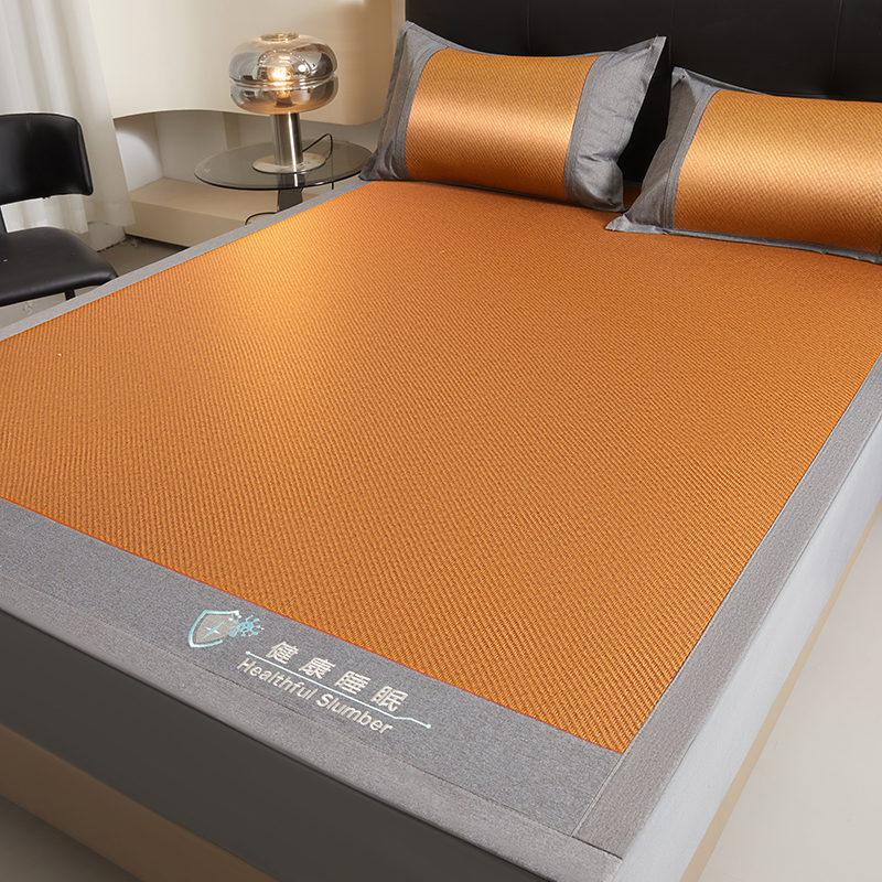 (总)席都 2024新款冰藤席床席三件套-三明治-冰藤席系列,灰,金,绿,粉,蓝