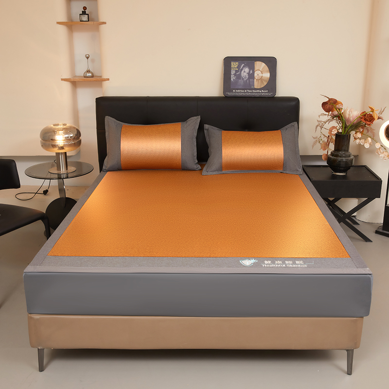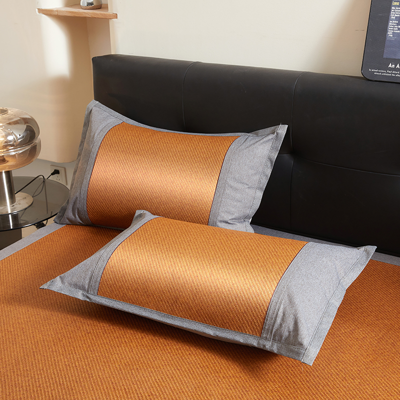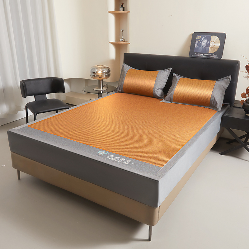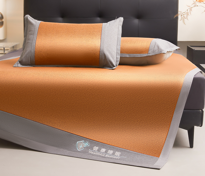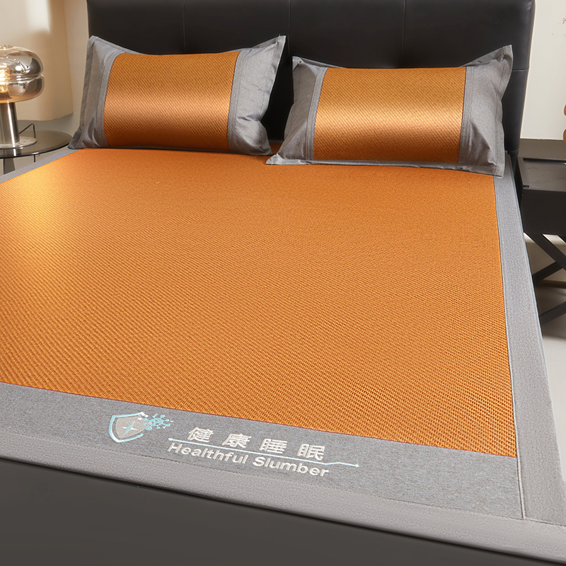 (总)席都 2024新款冰藤席床席三件套-三明治-冰藤席系列,灰,金,绿,粉,蓝