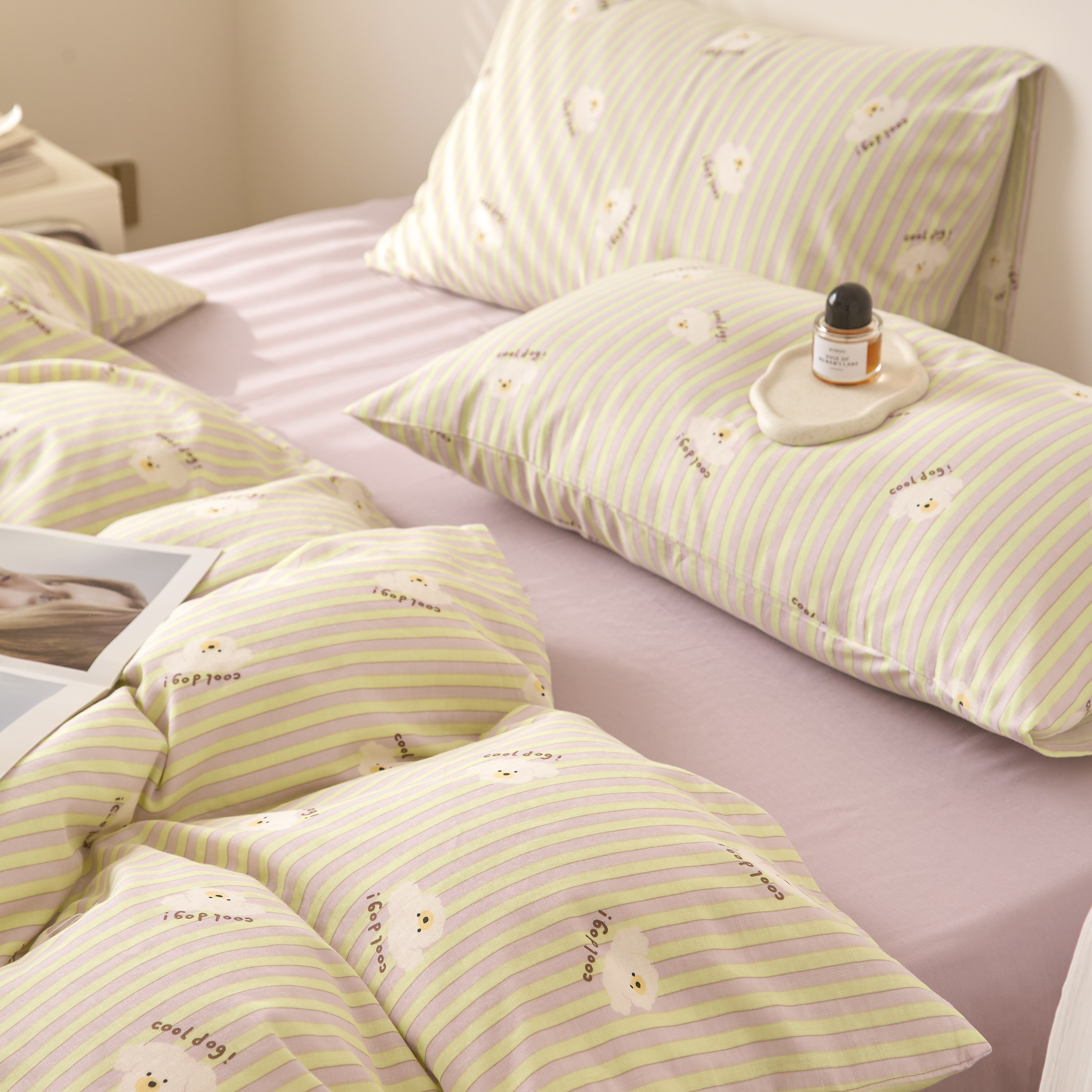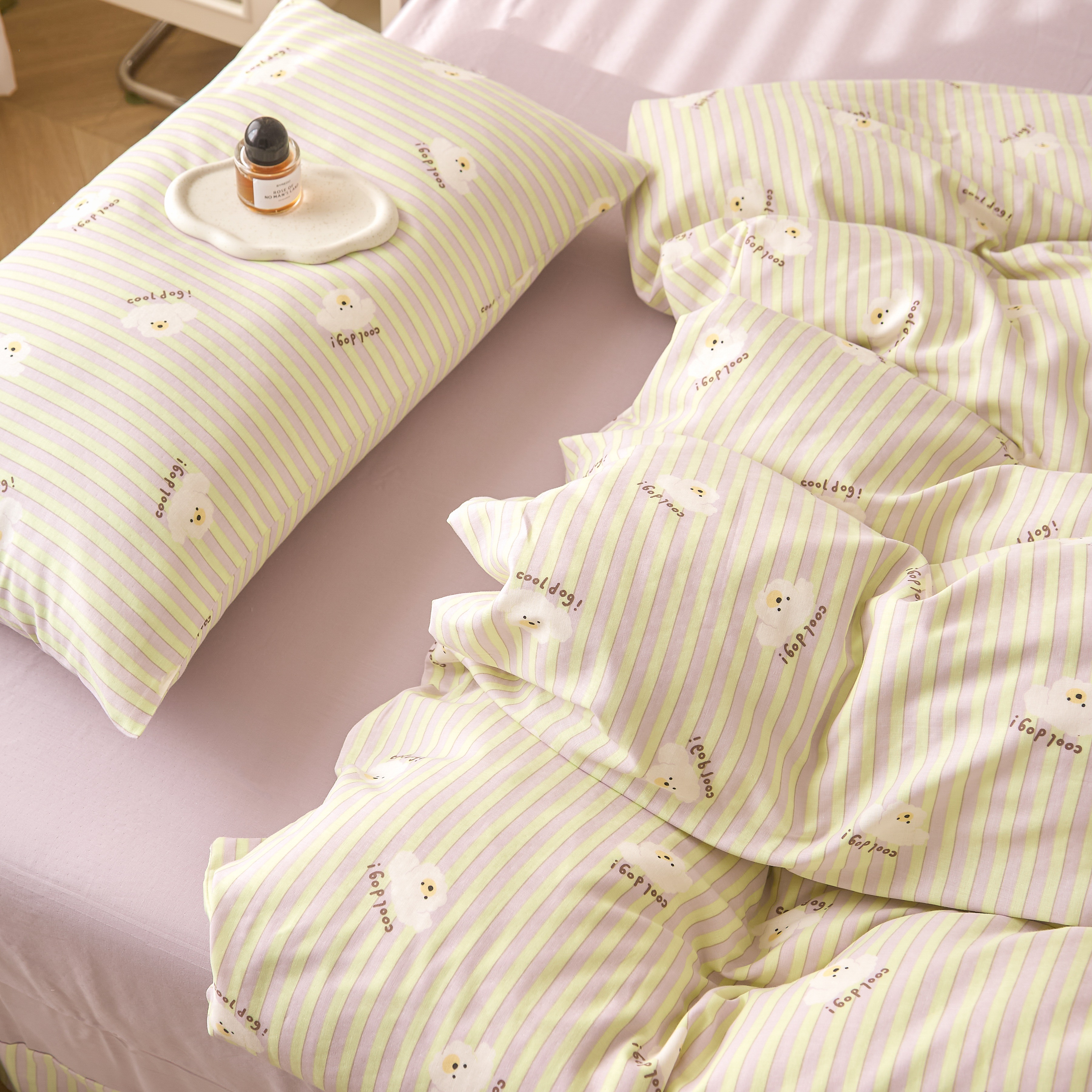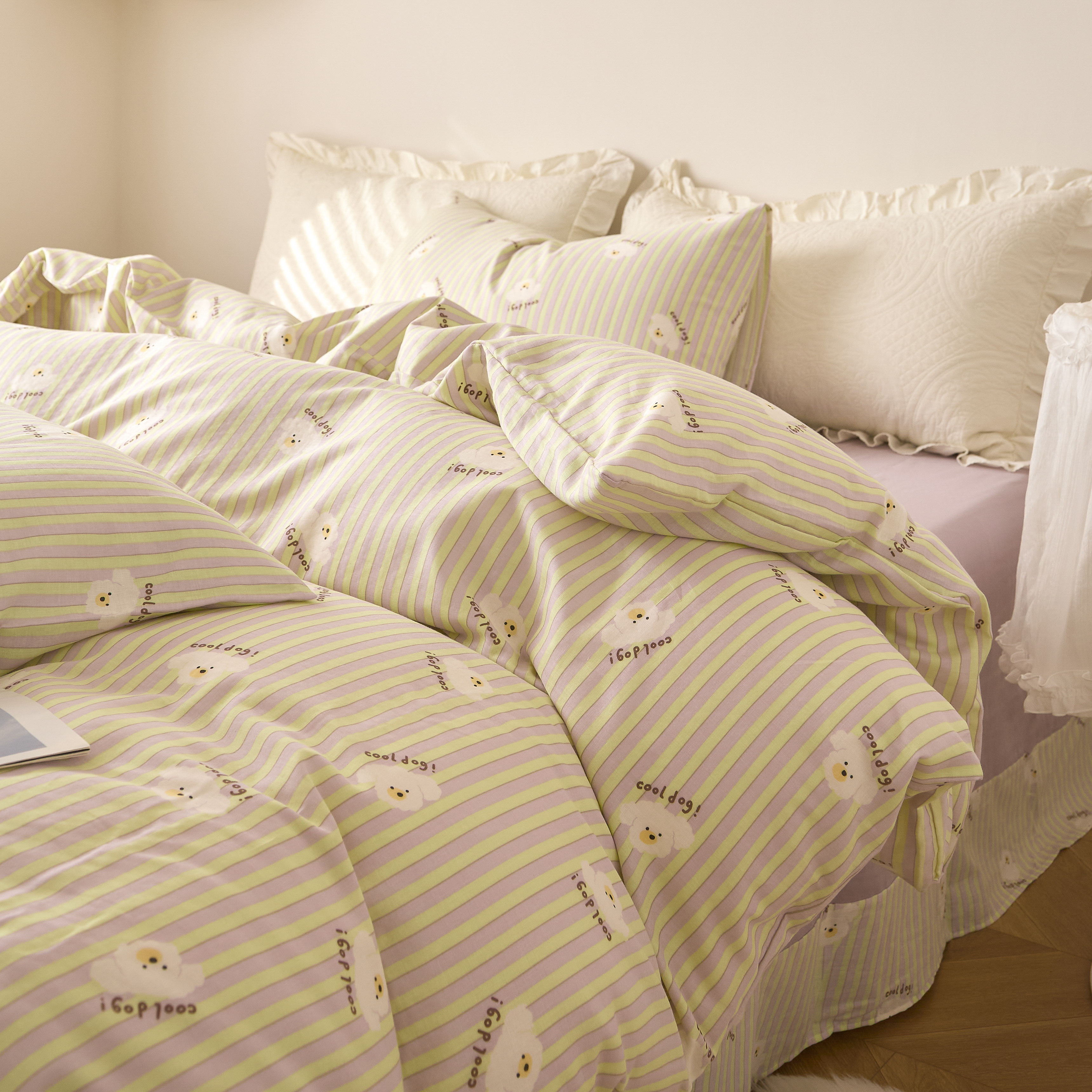 商品名称:嘉汀兰家居 2025新款圆角花边款全棉纯棉A类母婴级有氧全棉双层纱亲肤全棉小清新印花四件套 卷毛狗狗