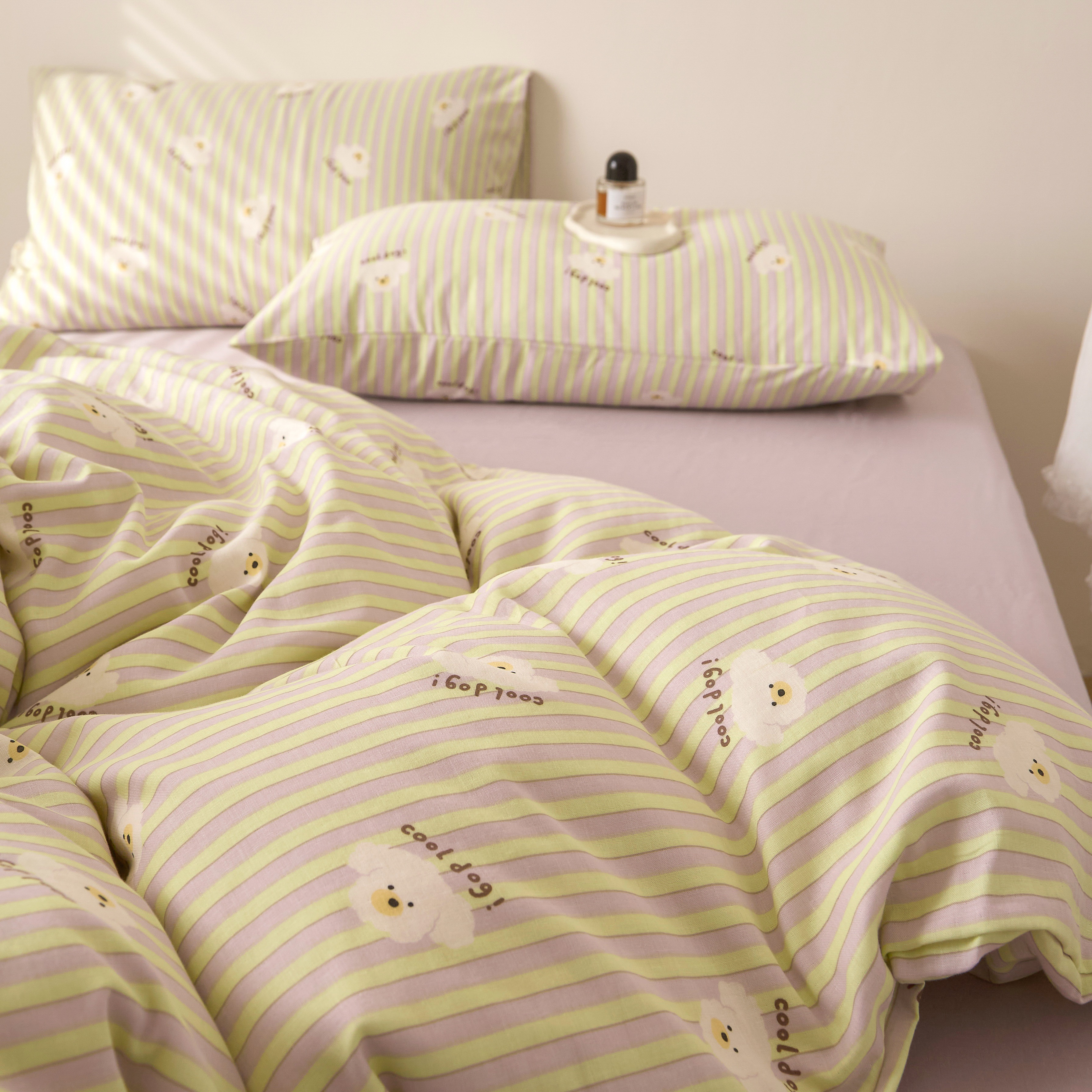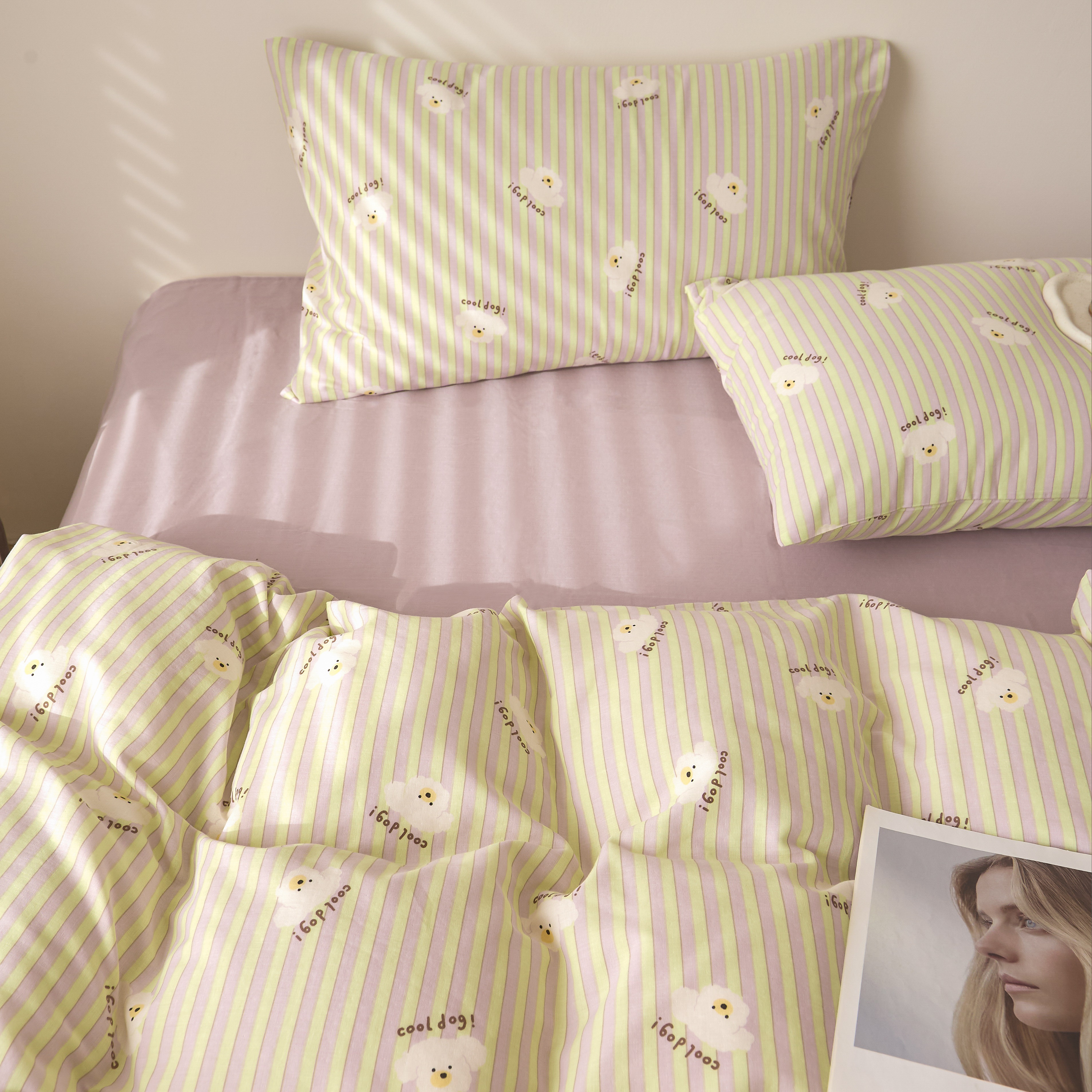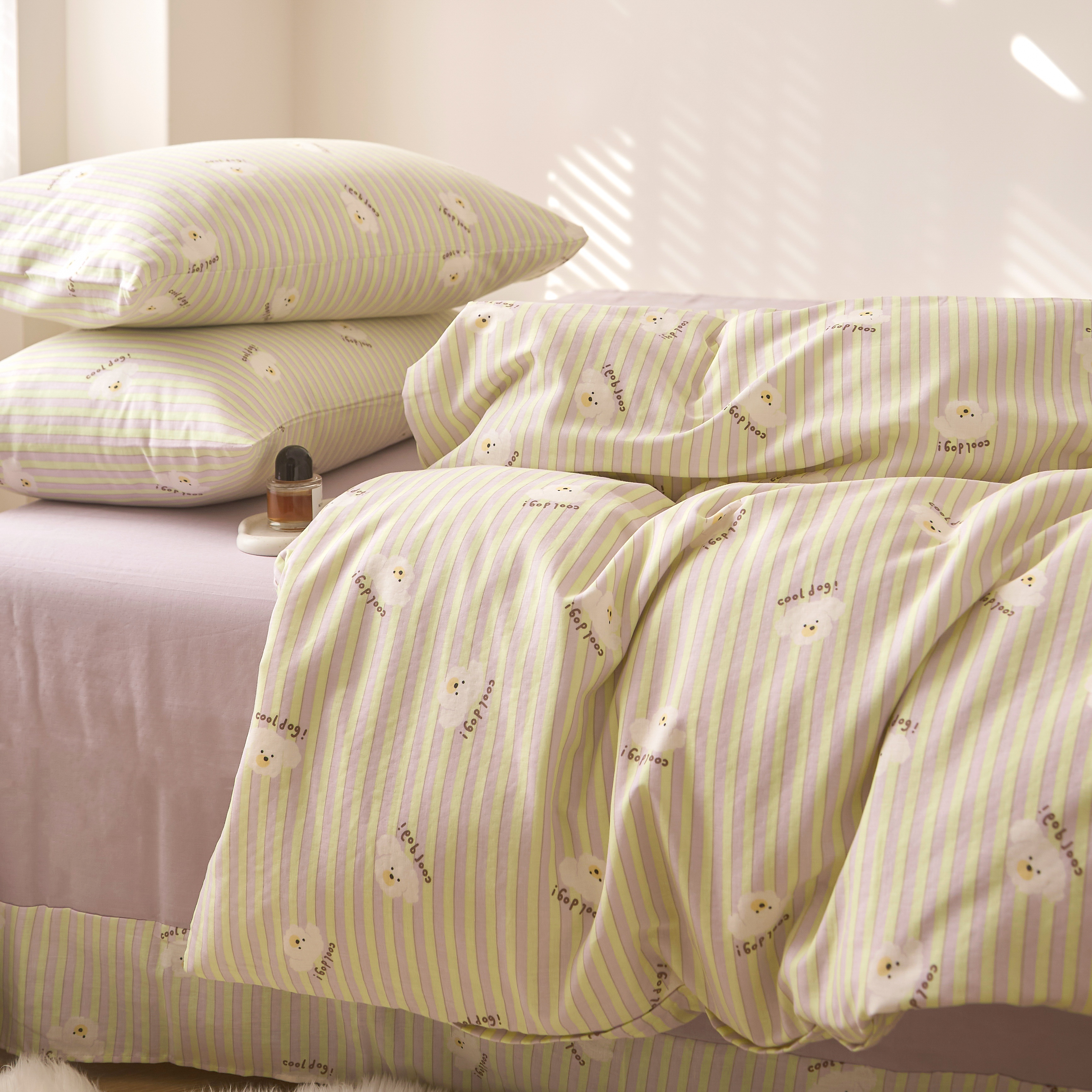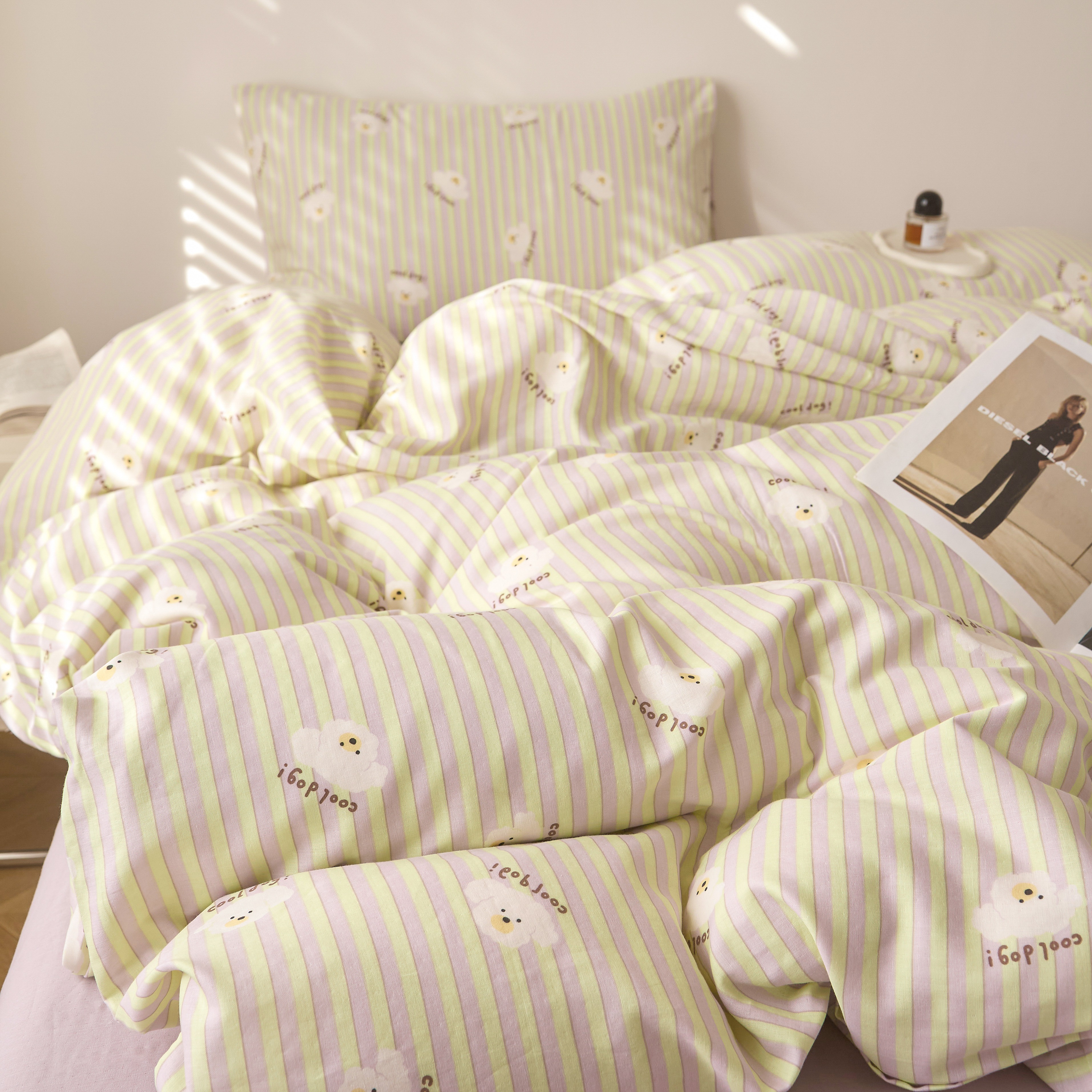 商品名称:嘉汀兰家居 2025新款圆角花边款全棉纯棉A类母婴级有氧全棉双层纱亲肤全棉小清新印花四件套 卷毛狗狗