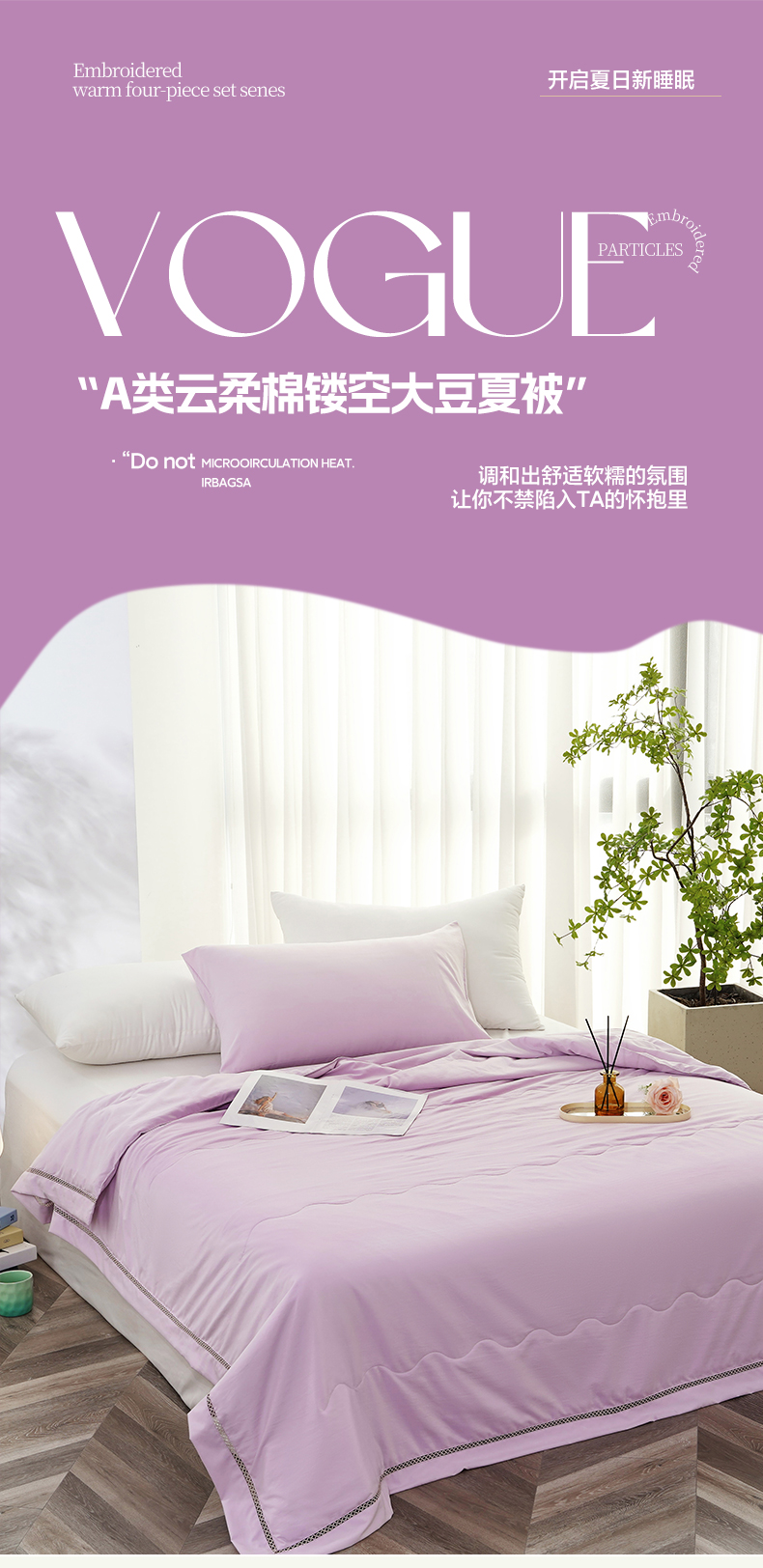 商品名称:优姿2025新款云柔棉大豆镂空烫钻夏被被子被芯 紫色