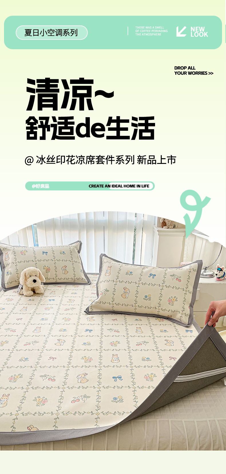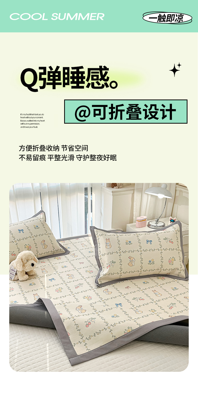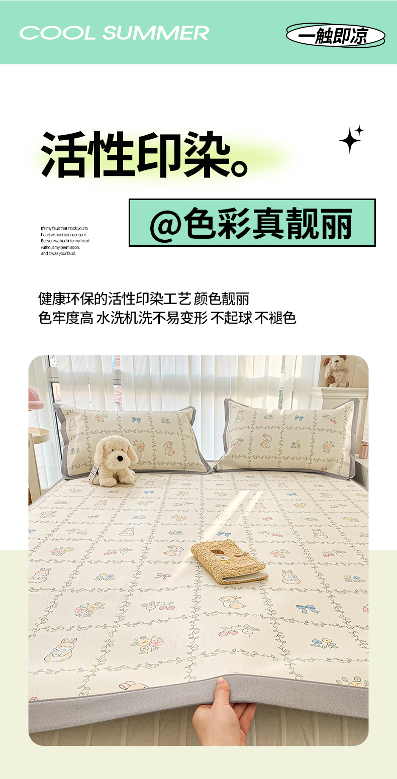 川悦生活 2025新款600D立体宽边冰丝印花凉席 格调小兔