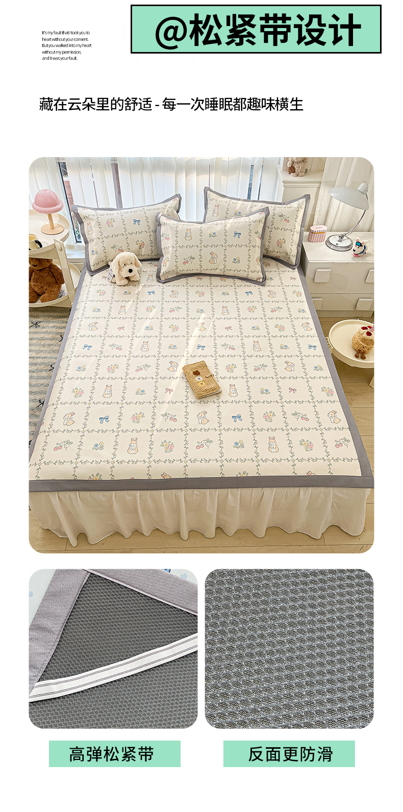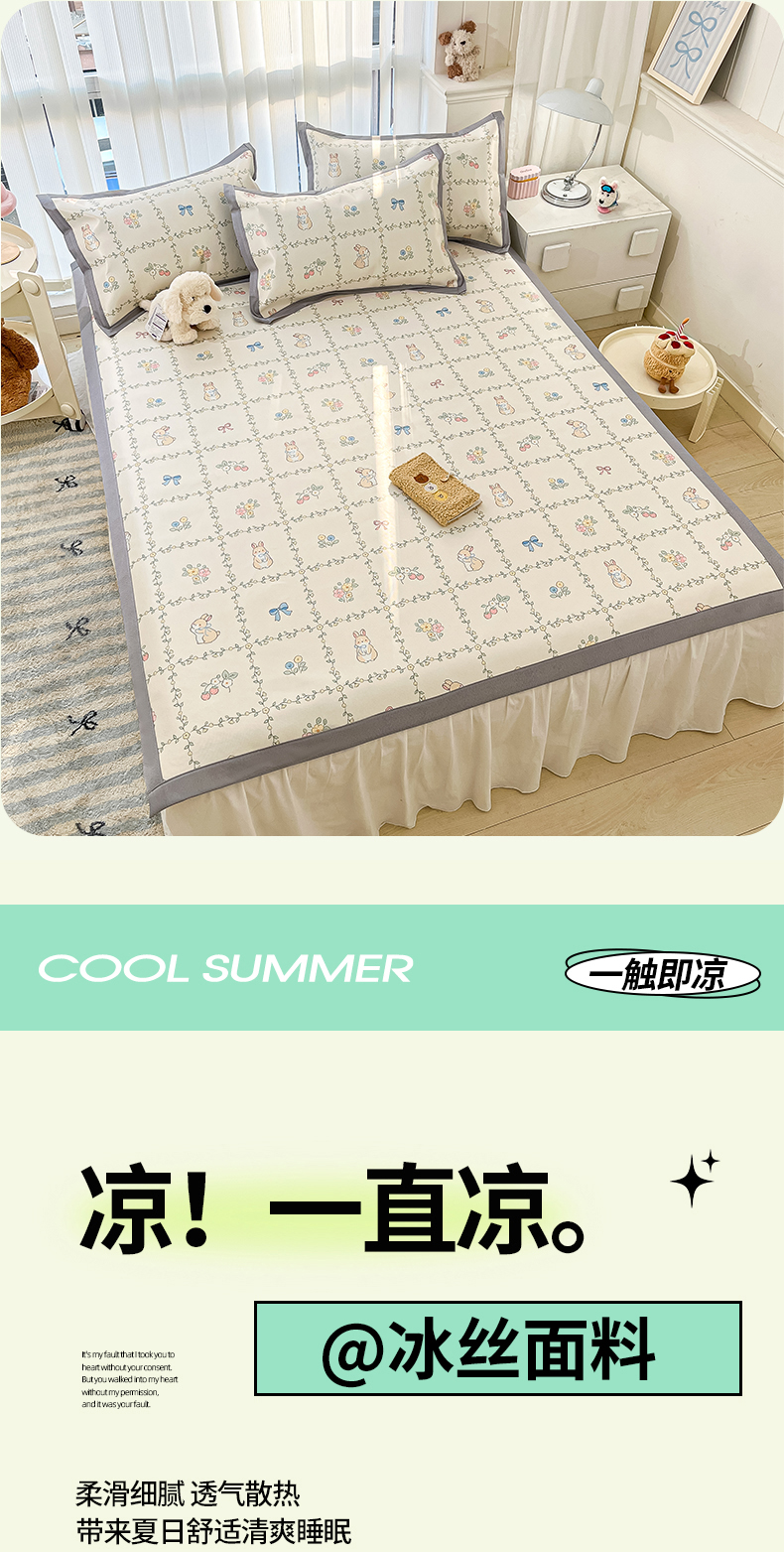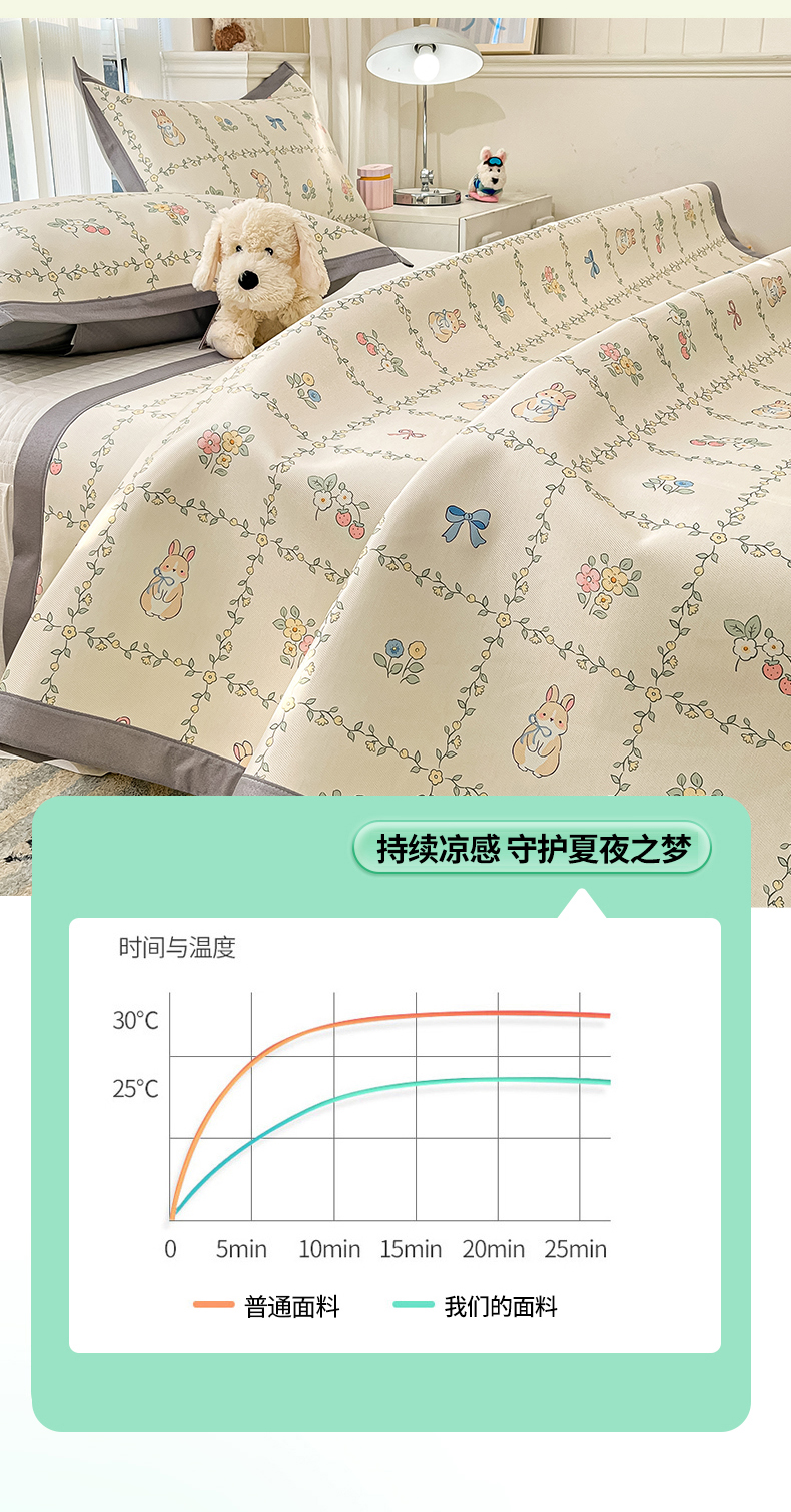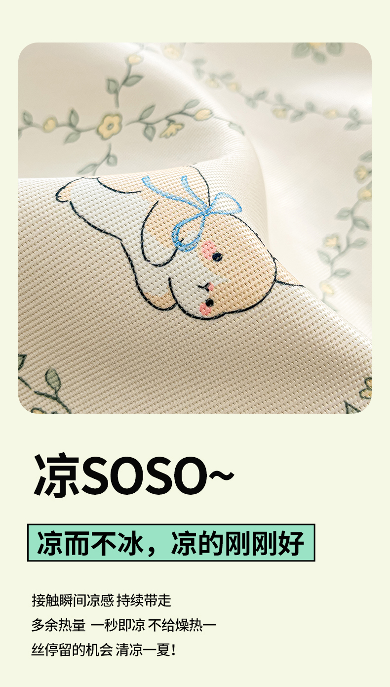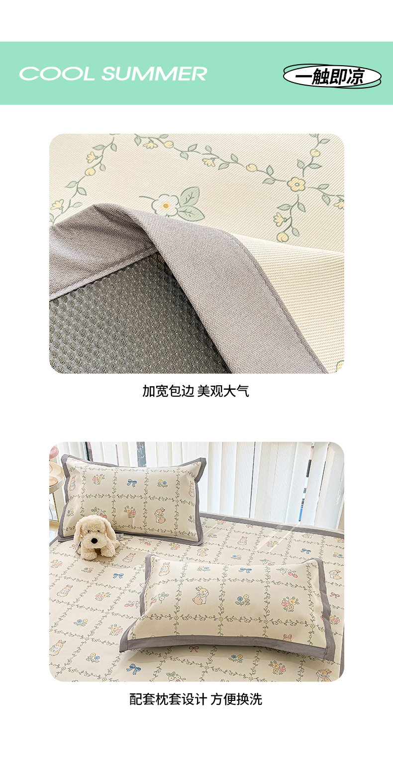 商品名称:川悦生活 2025新款600D立体宽边冰丝印花凉席 格调小兔