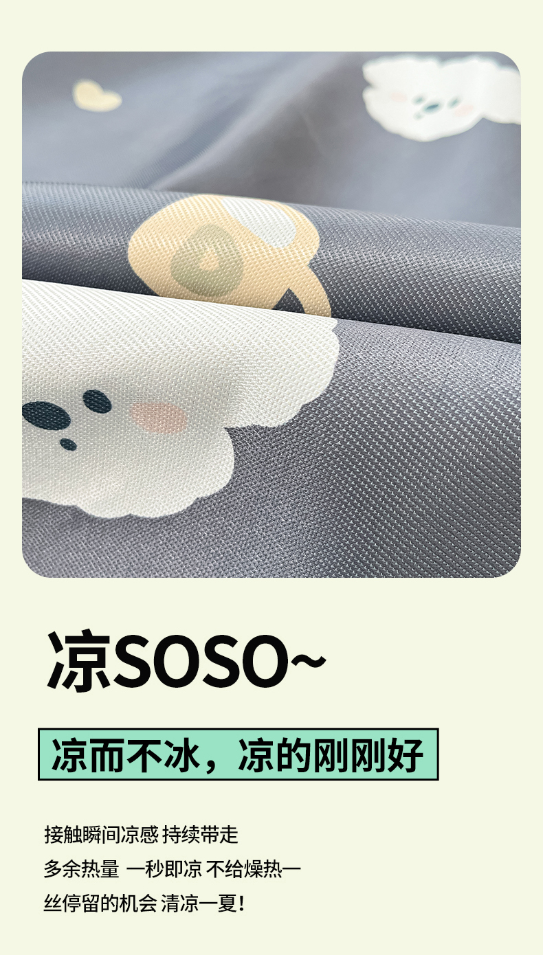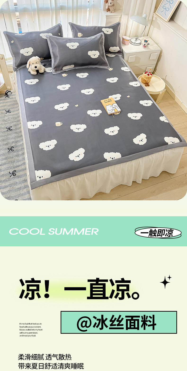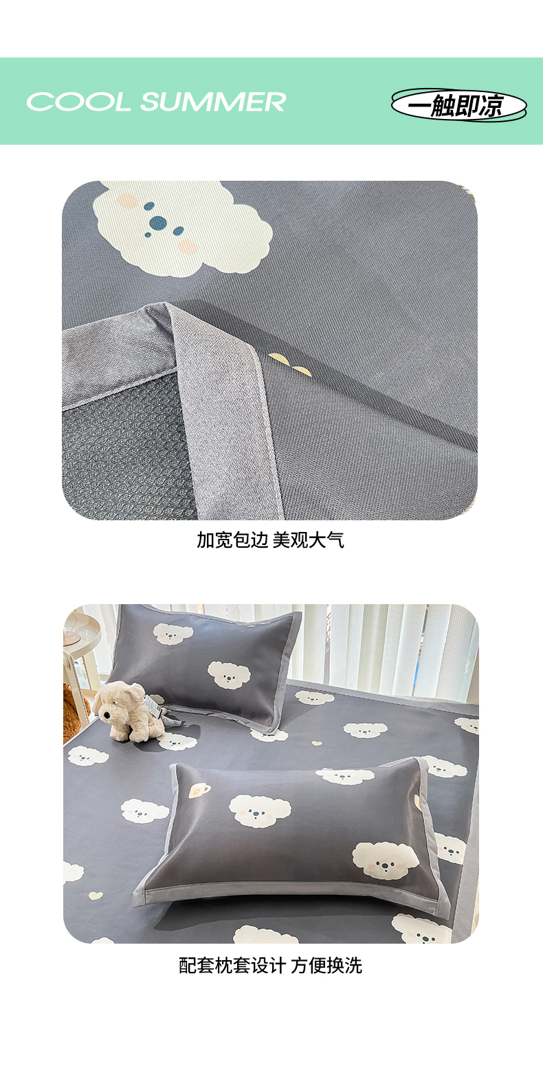 商品名称:川悦生活 2025新款600D立体宽边冰丝印花凉席 哇叽小狗-灰