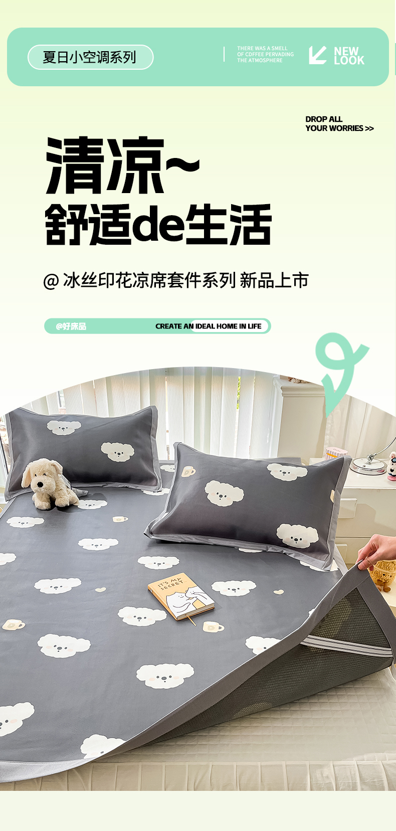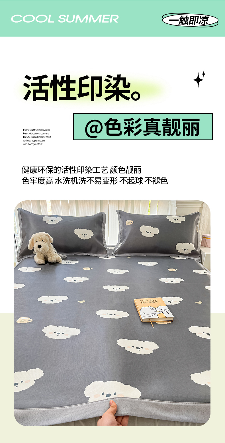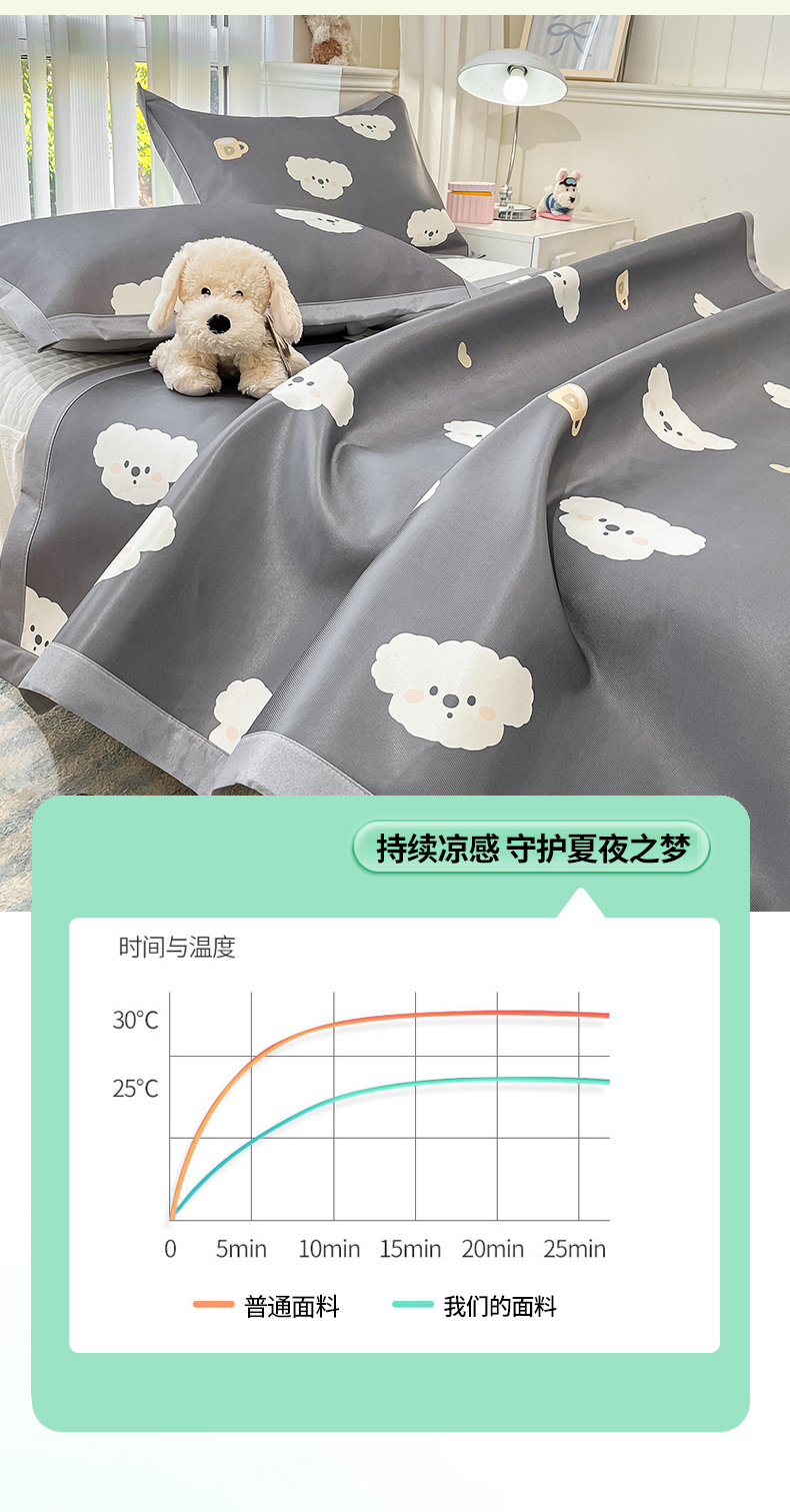 商品名称:川悦生活 2025新款600D立体宽边冰丝印花凉席 哇叽小狗-灰