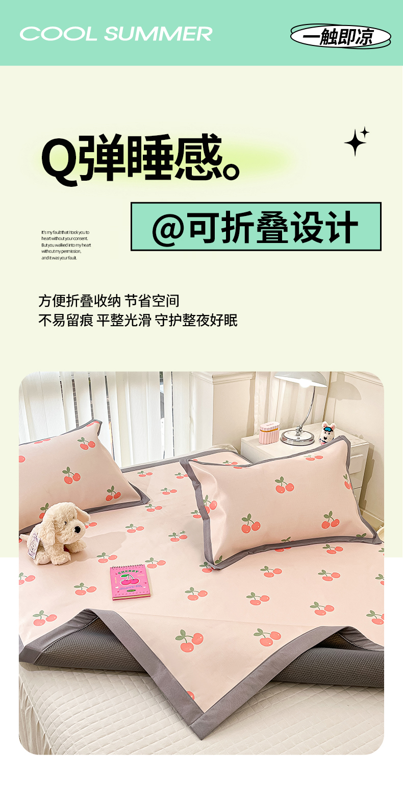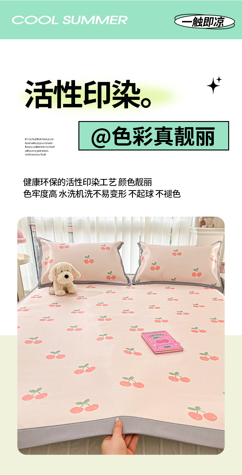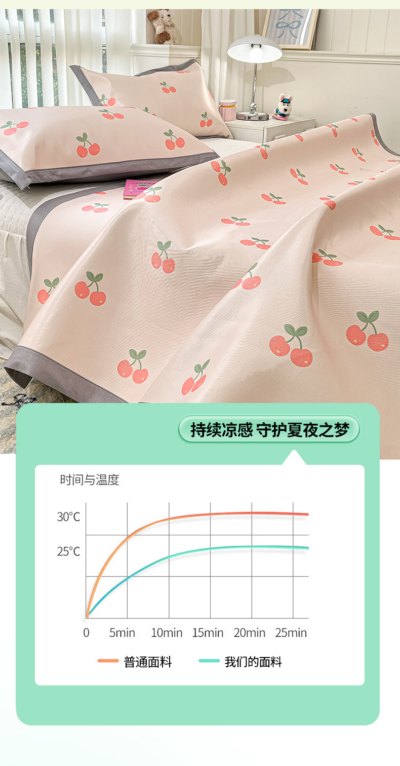商品名称:川悦生活 2025新款600D立体宽边冰丝印花凉席 星星小樱桃