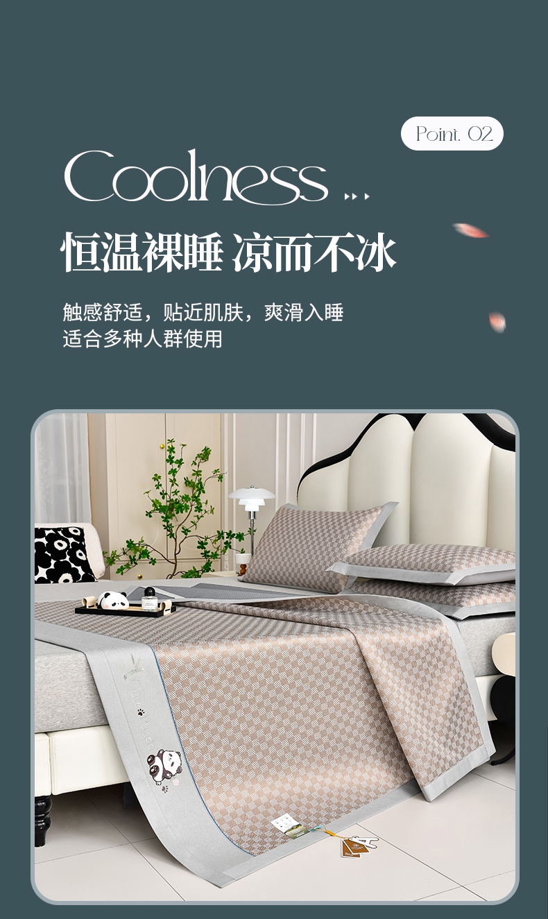 商品名称:(总)小牛席业 2025新款棋盘格-熊猫冰丝席系列凉席藤席冰丝席冰藤席冰丝席竹席空调席乳胶席凉感豆豆席
