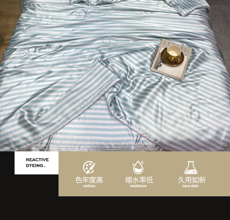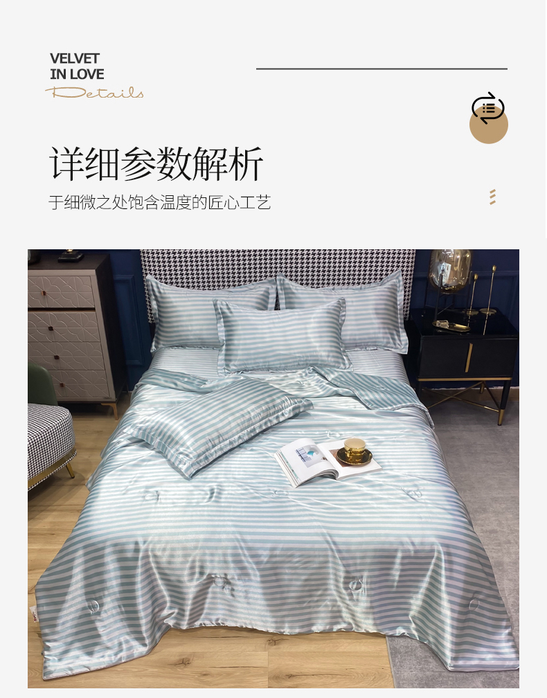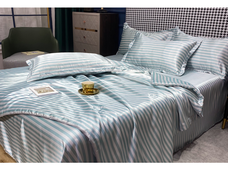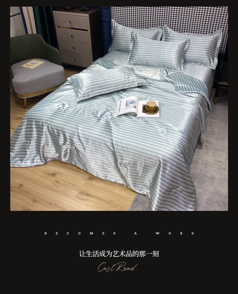 当前位置: 91家纺网 > 商品网购 > 床品套件 > 四件套 > 夏被四件套 > 经年 2025新款条纹丝绸冰丝夏被 浅绿中条-夏被