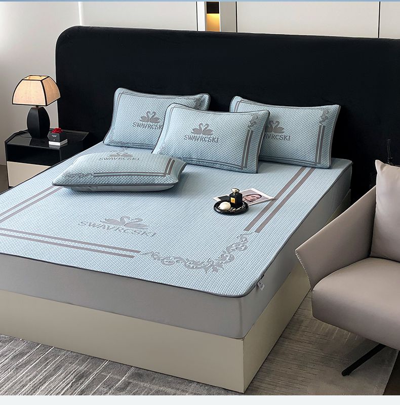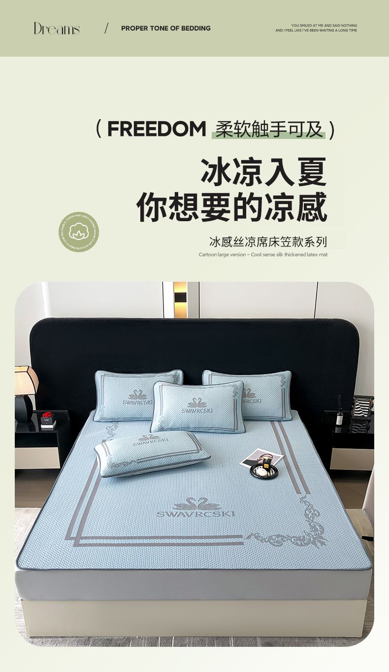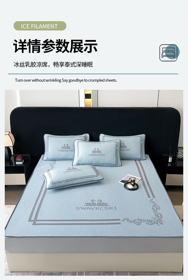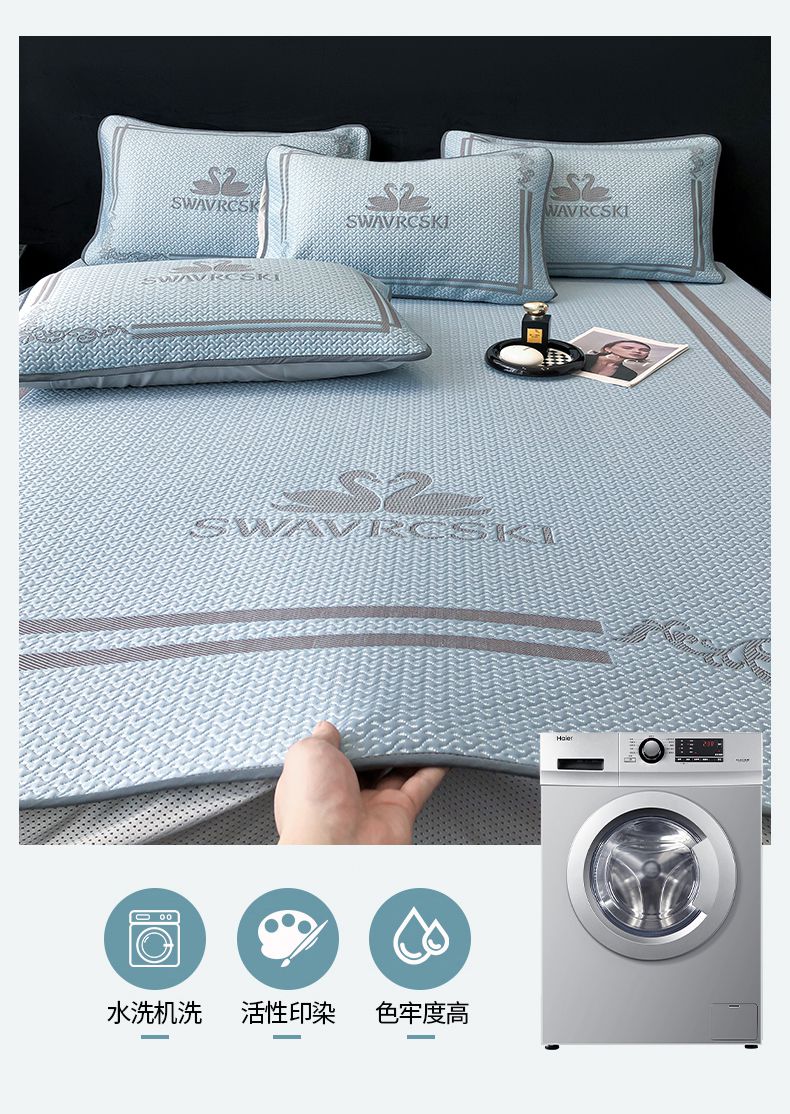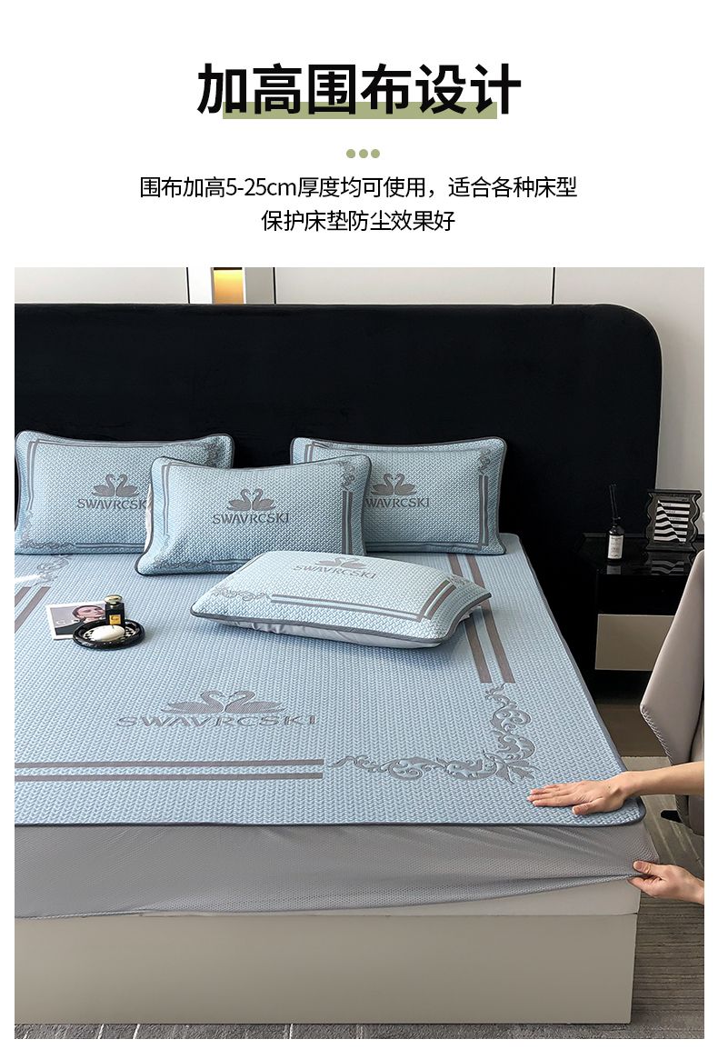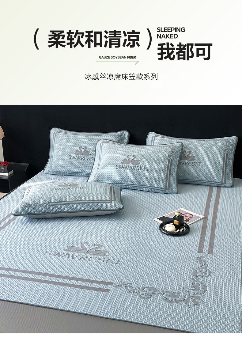 商品名称:首尔家纺 2025新款大版凉感丝凉席 天鹅-天空蓝