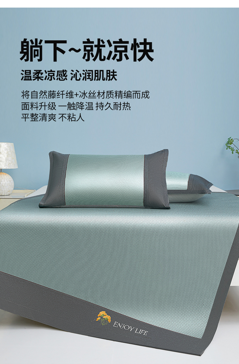 琪琪阁 2026新款冰藤三明治凉席 小米花-绿色