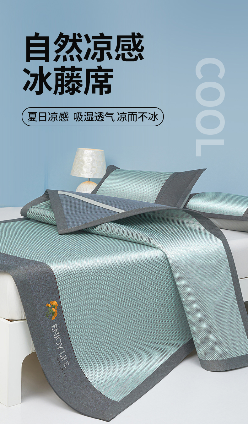 (总)琪琪阁 2026新款冰藤三明治凉席,小米花-灰色,小米花-金色,小米花-绿色,星星-浅灰,星星-深咖,星星-水绿,星星-雾蓝,星星-樱粉