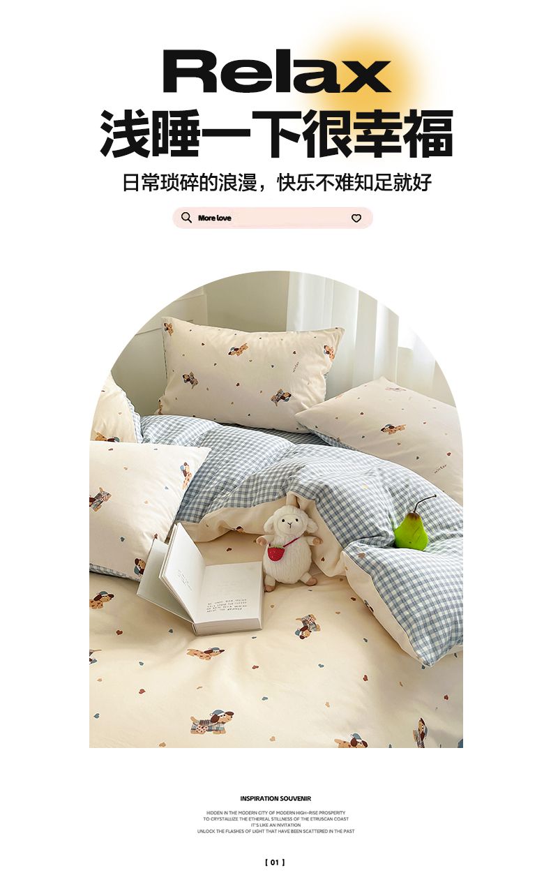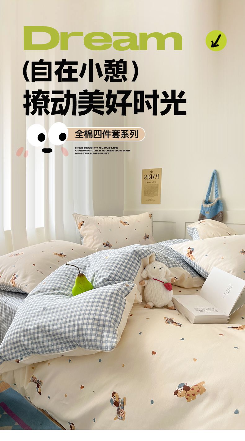 当前位置: 91家纺网 > 商品网购 > 床品套件 > 四件套 > 全棉普通四件套 > 首尔家纺 2025新款全棉印花四件套小清新系列 淘气佐佐