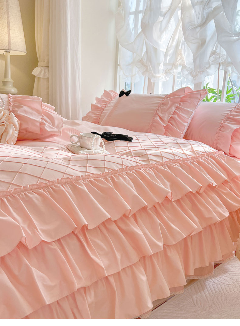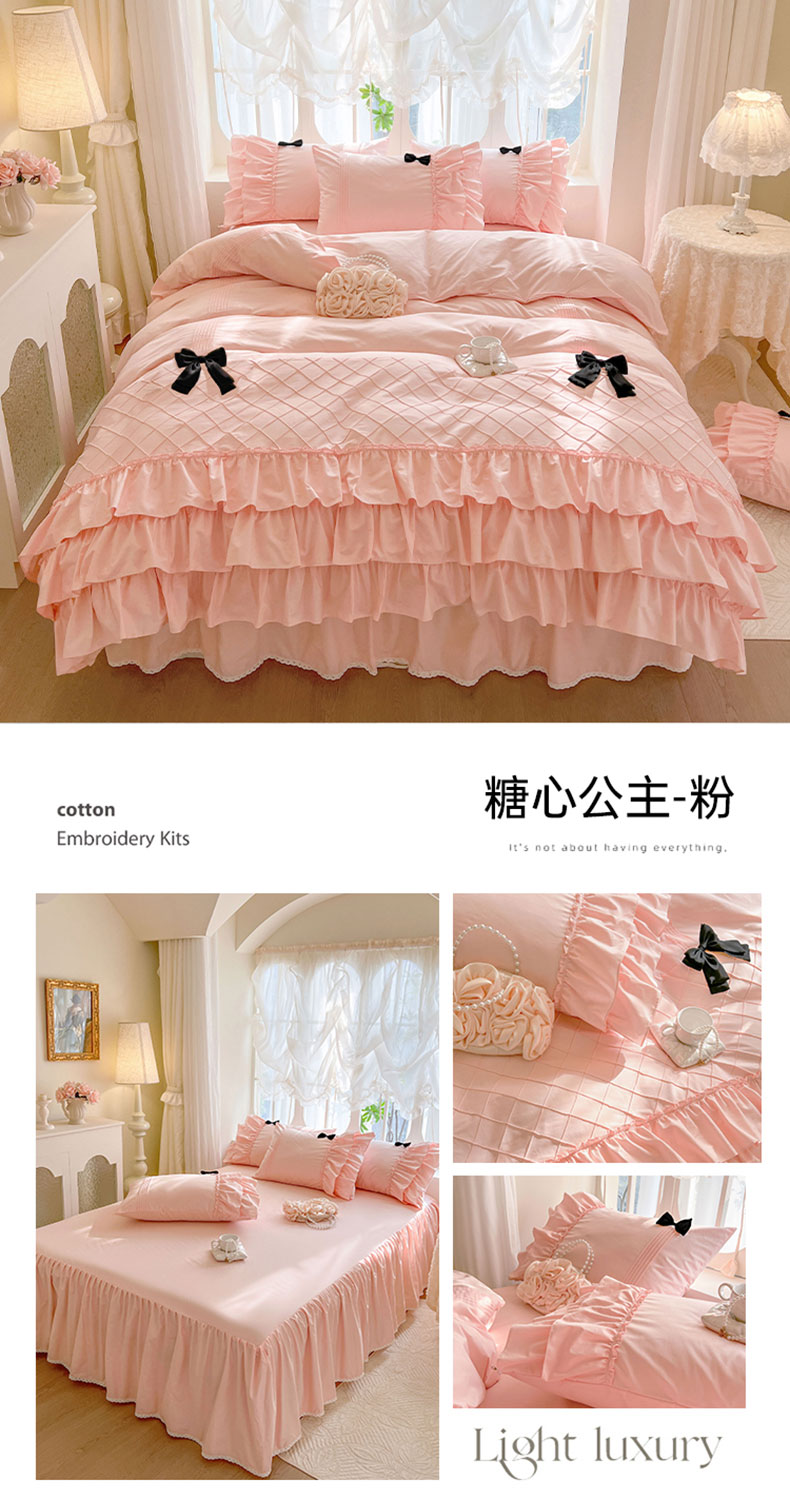 当前位置: 91家纺网 > 商品网购 > 床品套件 > 四件套 > 全棉普通四件套 > 惯盈家纺2025新款全棉华夫格公主裙四件套-糖心公主 粉