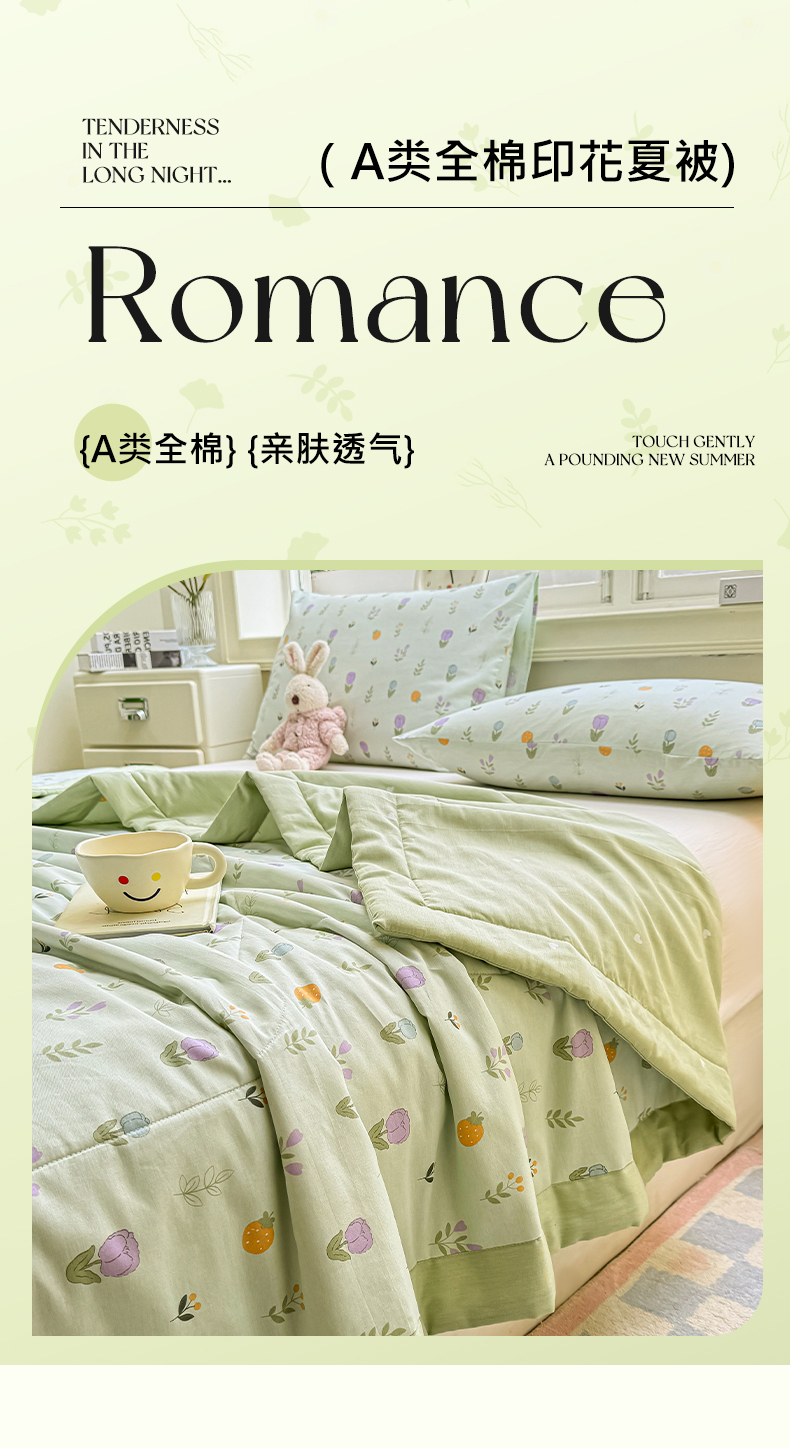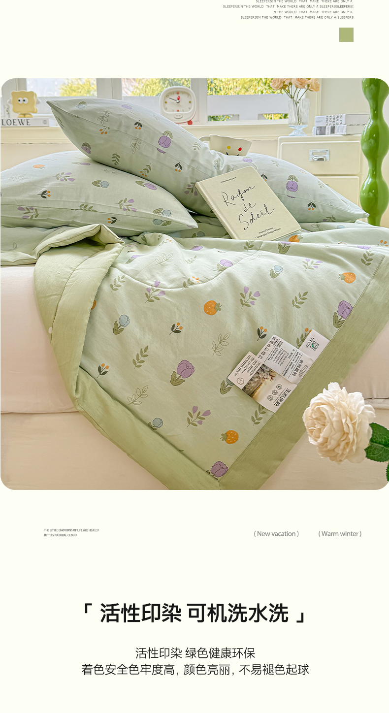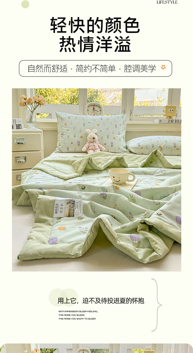 商品名称:沃尔居 2025新款双面全棉印花夏被可机洗小清新纯棉夏凉被薄被芯空调被子 郁金花园
