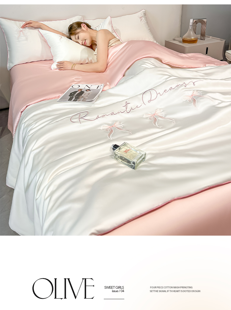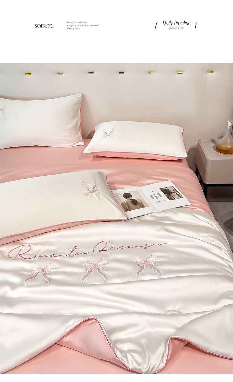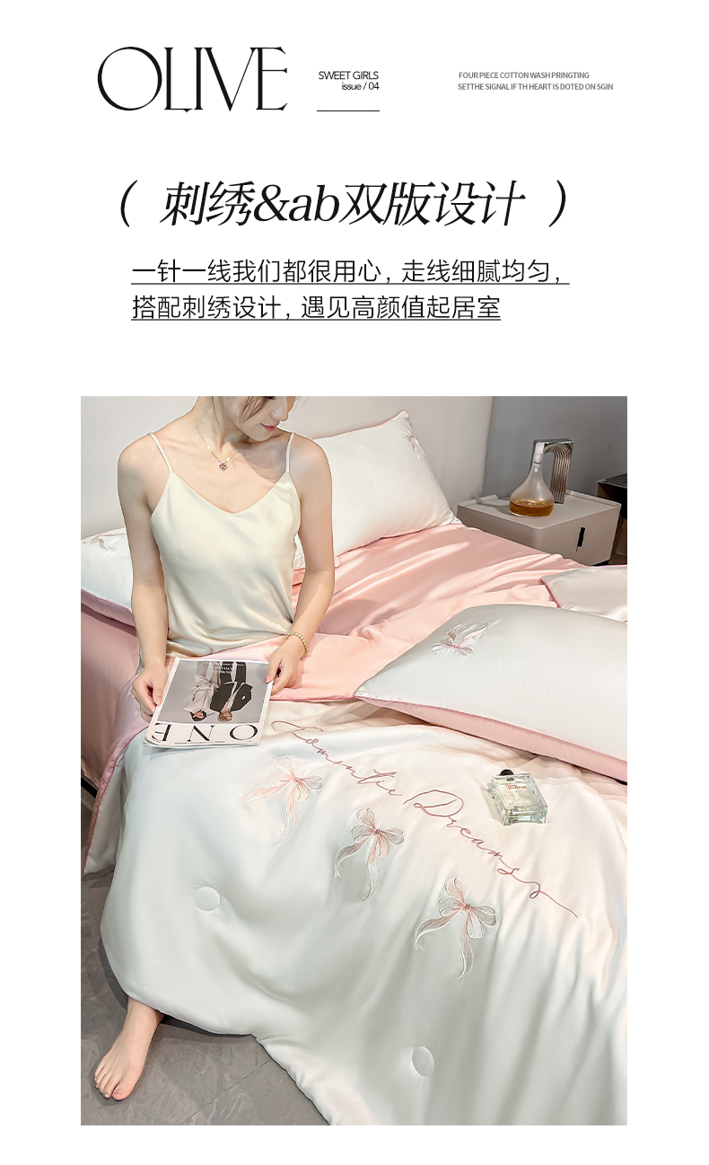 • 91家纺网 家纺一手货源 找家纺 如一 2025新款水洗冰丝麻绳夏被四件套-初夏 初夏-奶白粉