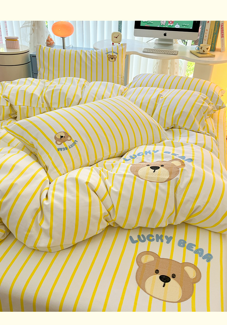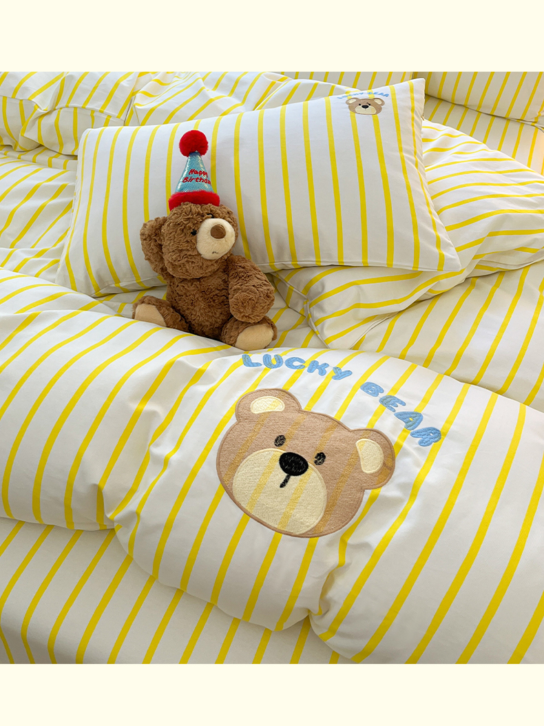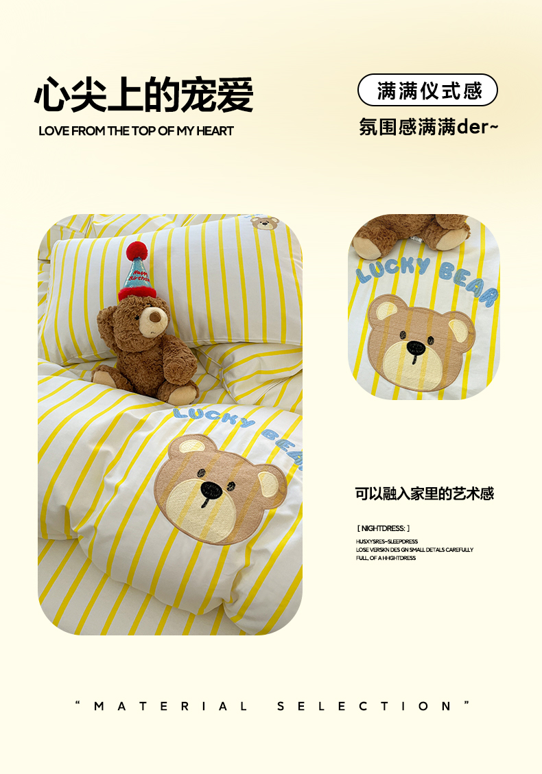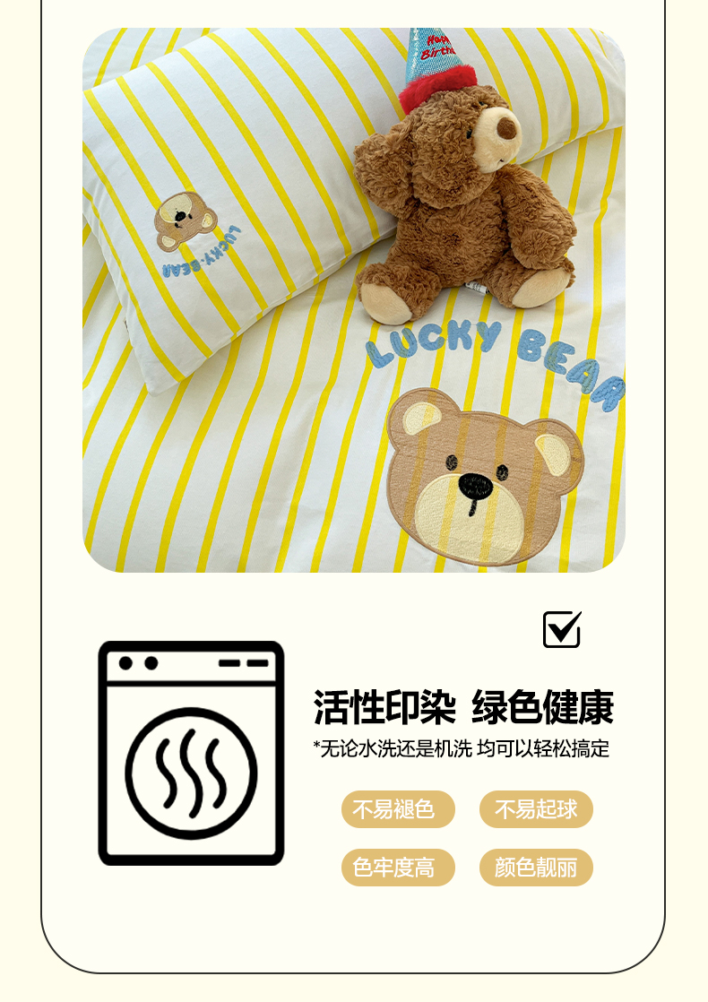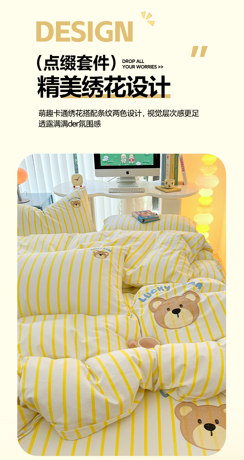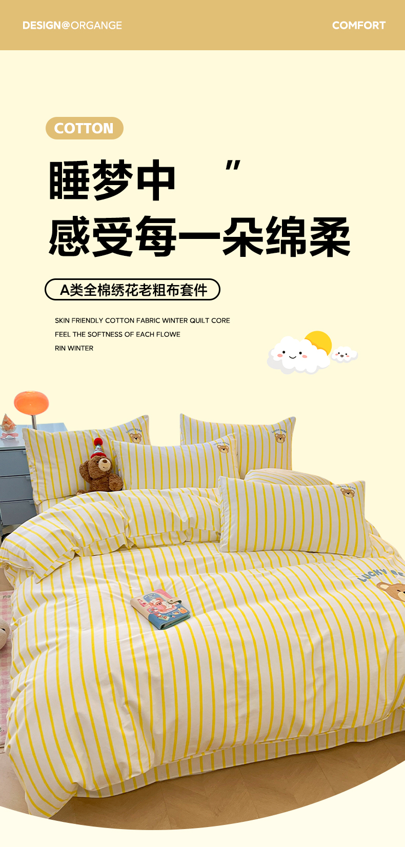 当前位置: 91家纺网 > 商品网购 > 床品套件 > 四件套 > 全棉普通四件套 > 雅居纺家纺 2025春夏新款全棉纯棉绣花老粗布四件套 幸运熊