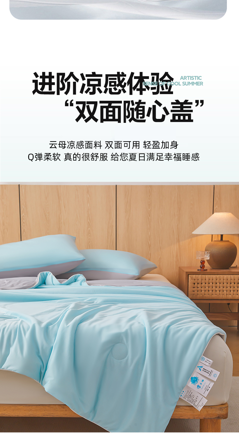 商品名称:鸿羽樱家纺《原伊菲晓》 2025新款夏被空调被A类云母氨纶凉感丝夏凉被 雾兰+山灰