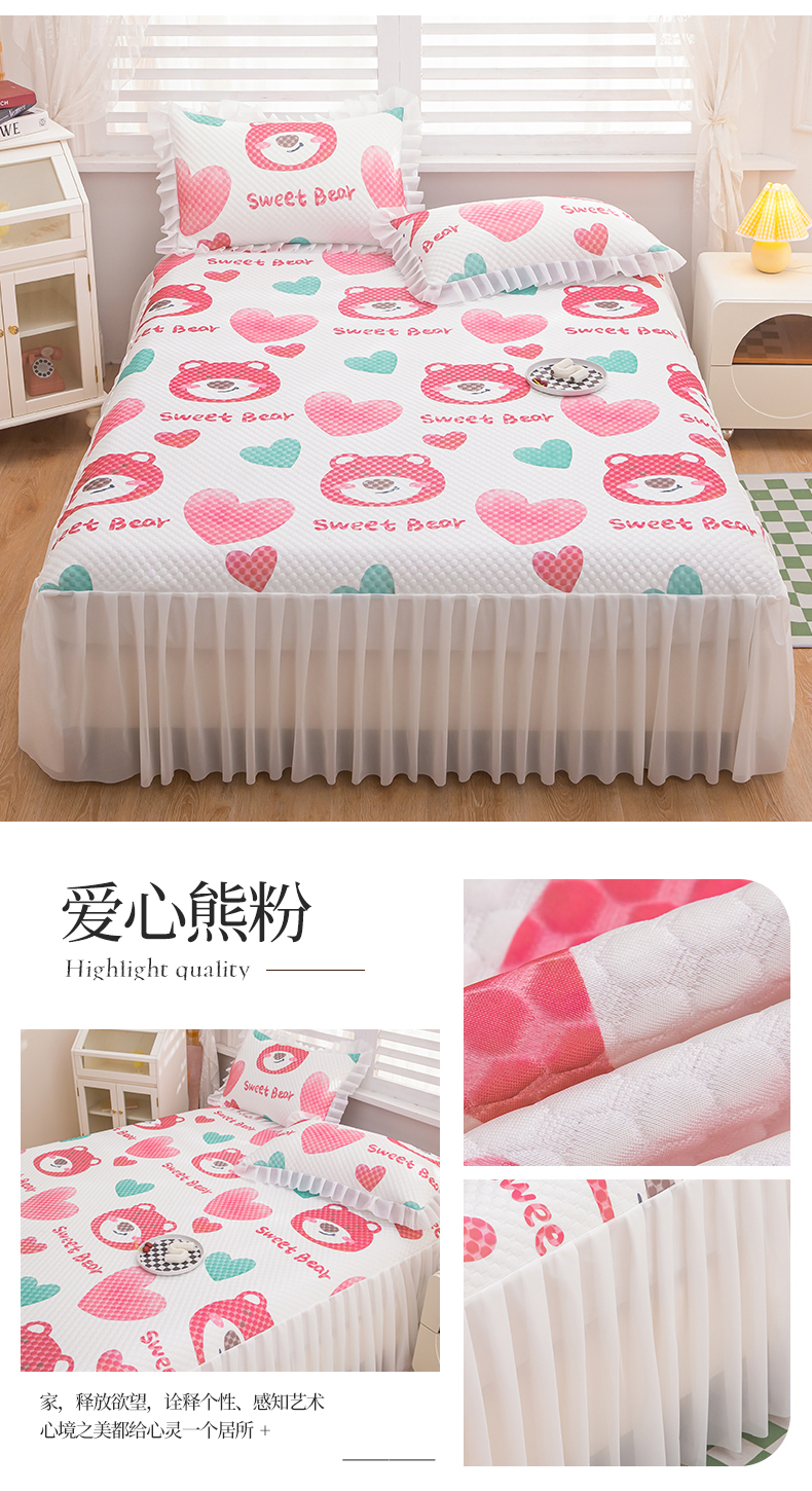 2025新款A类冰豆豆床裙款印花凉席 爱心熊粉色