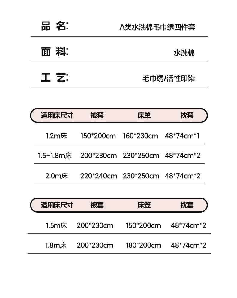 1.8m床笠四件套被套200*230 | ¥90.00 |