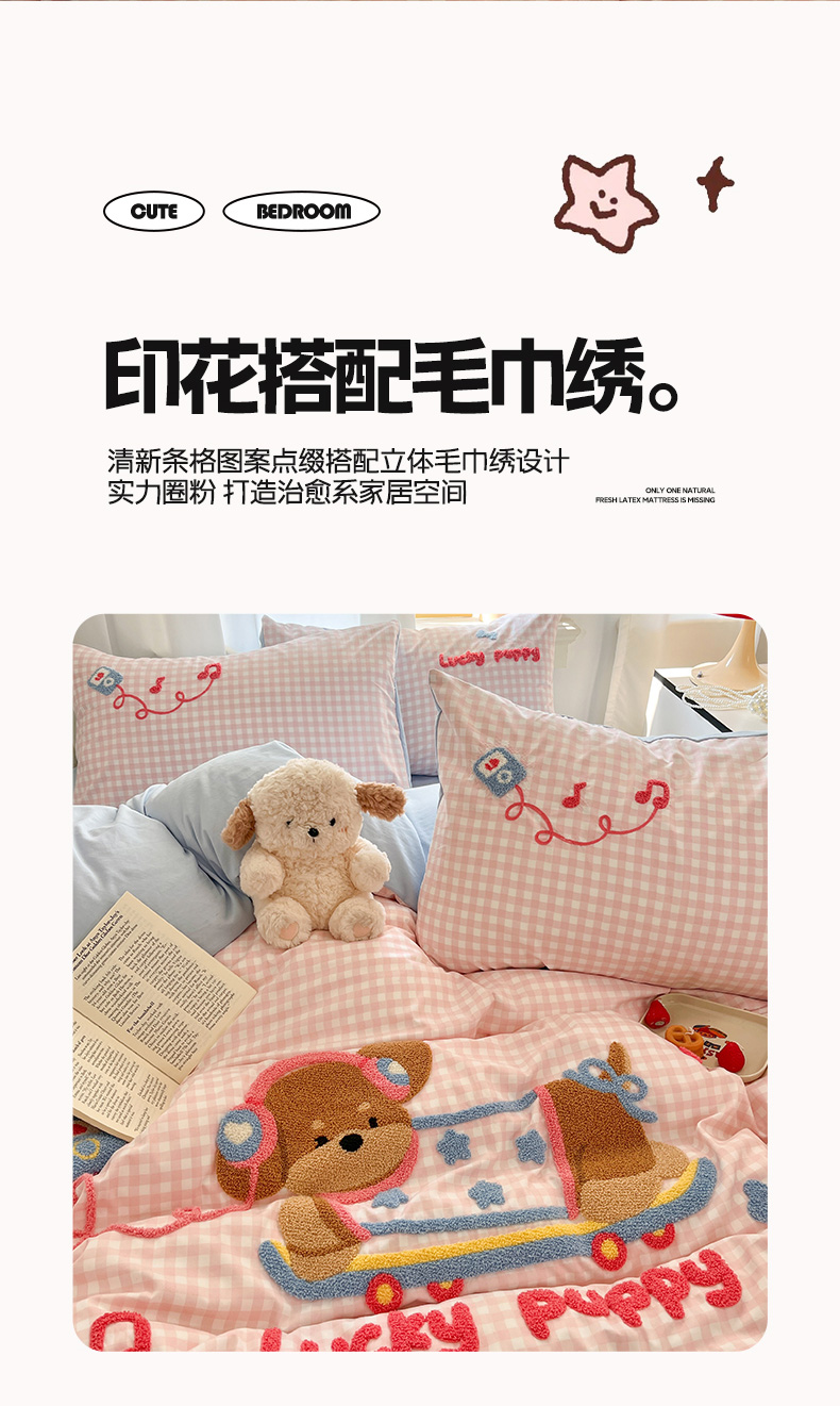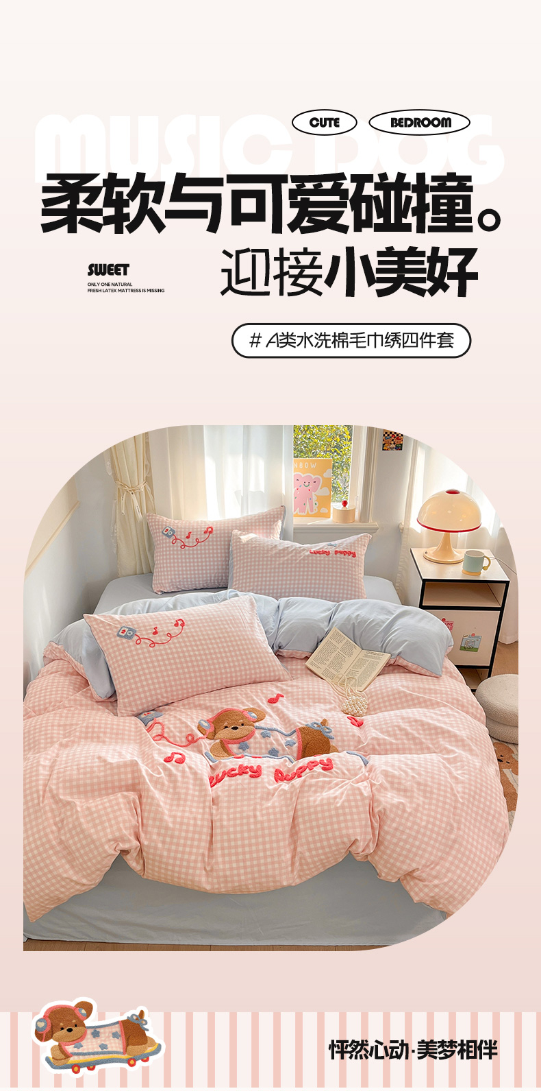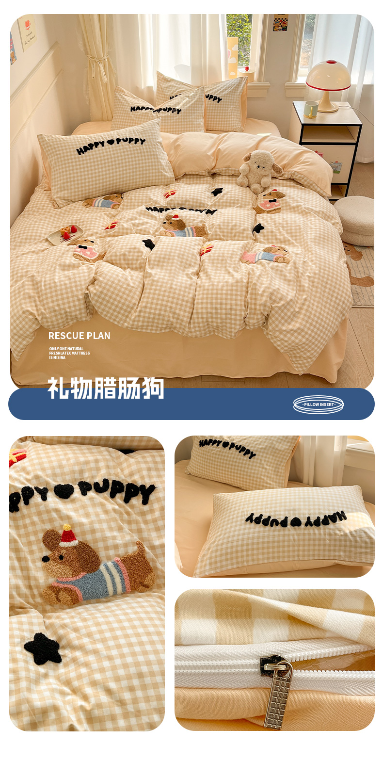 当前位置: 91家纺网 > 商品网购 > 床品套件 > 四件套 > 水洗棉四件套 > 2025新款水洗棉猫咪毛巾绣四件套 音乐腊肠狗