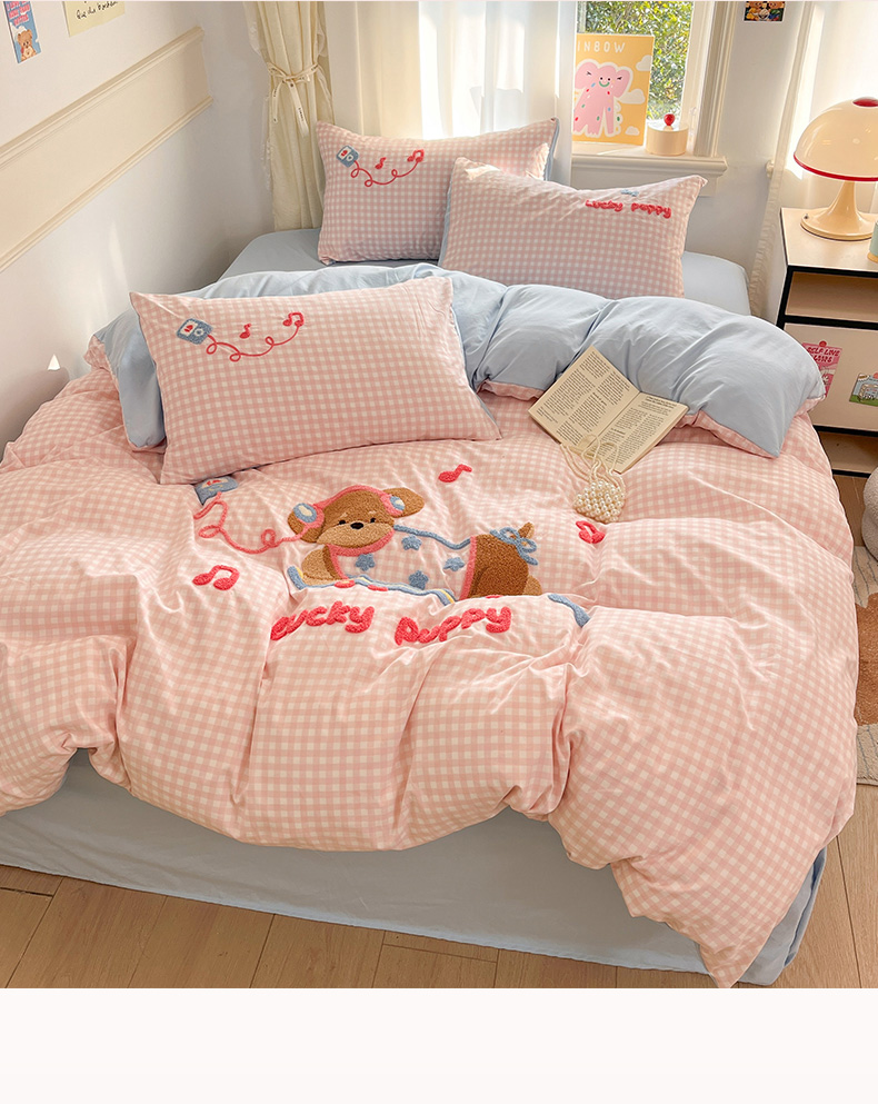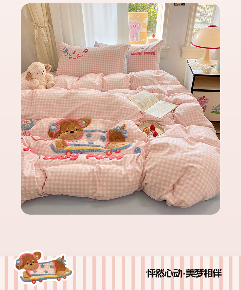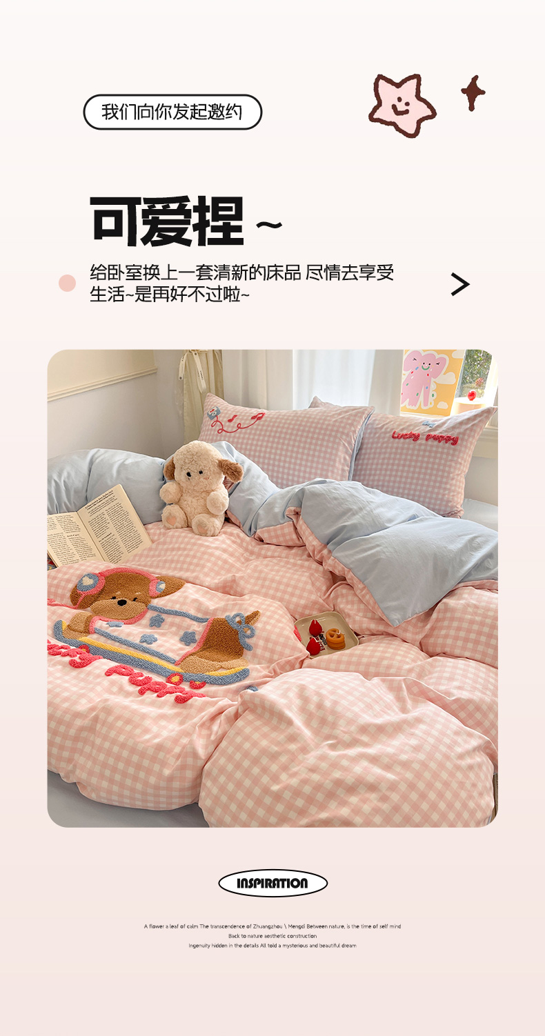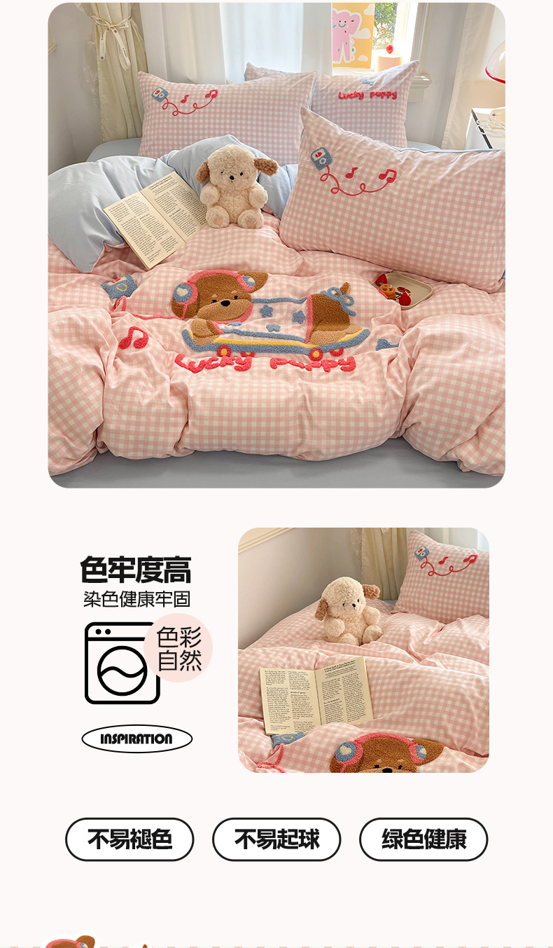 当前位置: 91家纺网 > 商品网购 > 床品套件 > 四件套 > 水洗棉四件套 > 2025新款水洗棉猫咪毛巾绣四件套 音乐腊肠狗